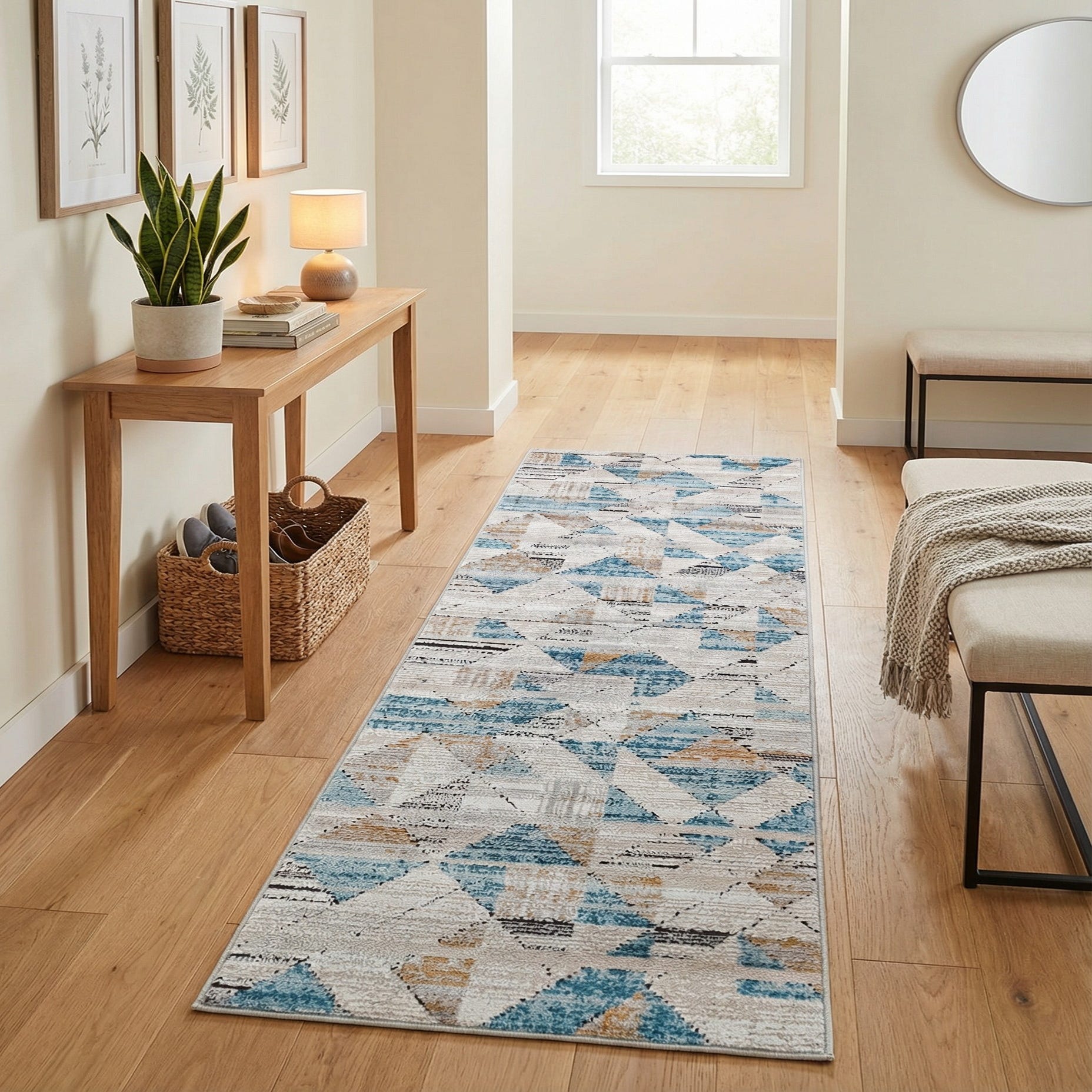 Ideal for narrow spaces, this runner works well in hallways, entryways, galley kitchens or alongside a bed. It complements contemporary, transitional, and coastal-inspired interiors, and pairs nicely with light wood tones, neutral upholstery, or brushed metal accents for a balanced, layered look.