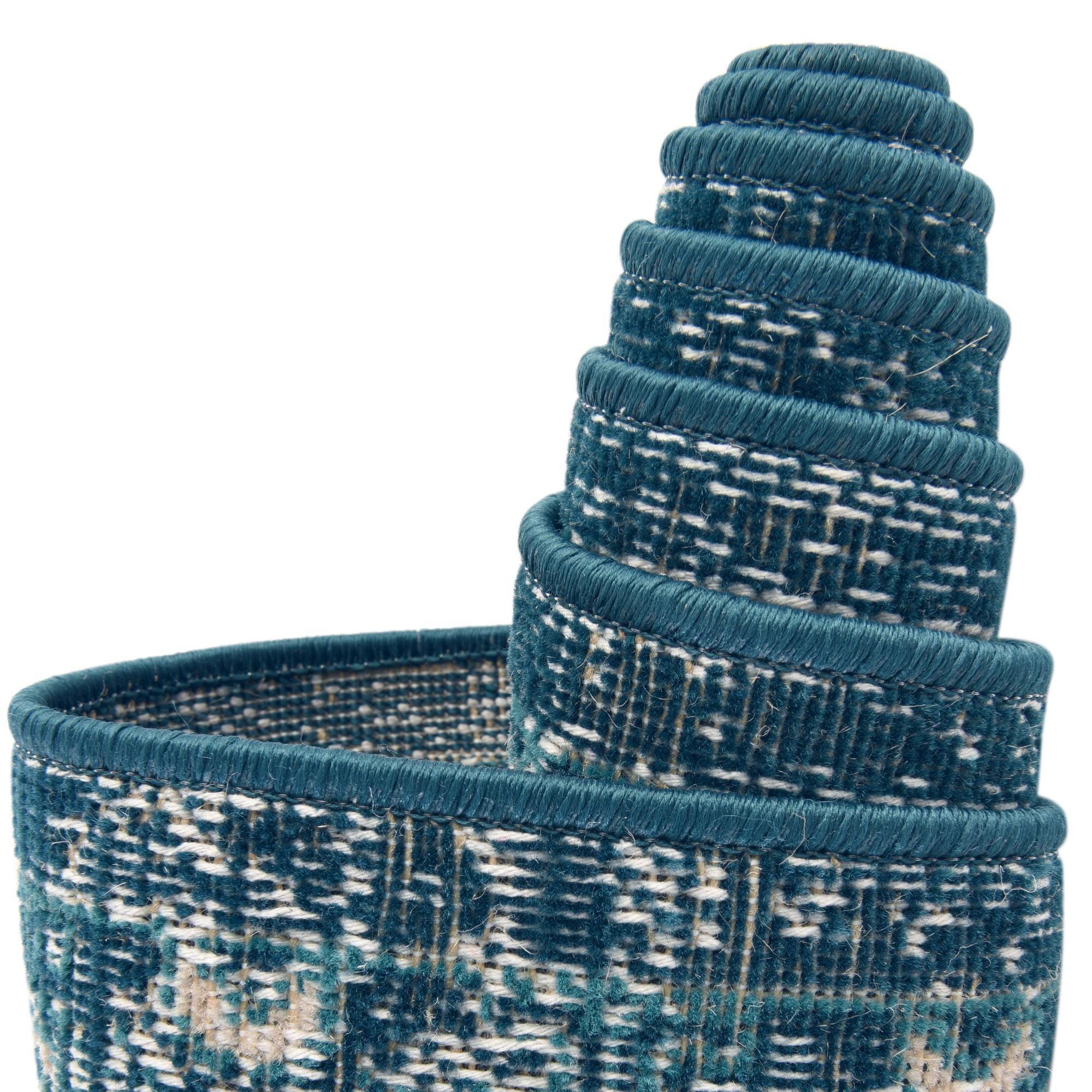 A vintage-inspired medallion pattern gives this runner an old-world character with a gently distressed finish. The background blue anchors the design while ivory and light-blue highlights trace the intricate geometric motifs, and touches of gray add depth across the field and border. Underhand, the machine-made construction in 100% polypropylene feels low-profile and tightly woven, with a smooth, slightly textured surface that invites bare feet without adding bulk.