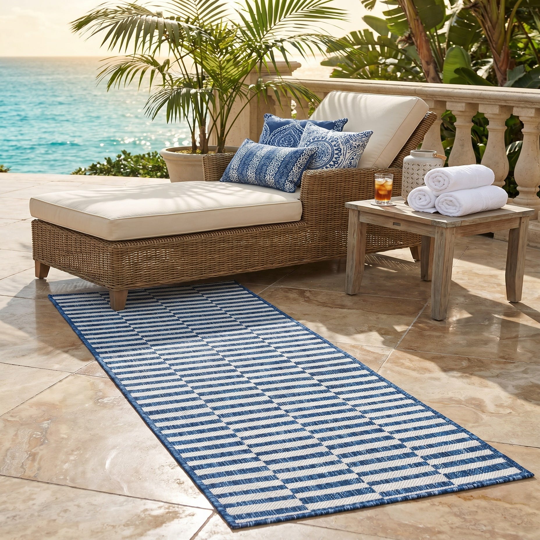 I bought this rug for my balcony and it’s transformed the space. I don’t have to worry about the rug if it rains- it’s very good quality. I’m very happy with this purchase!
