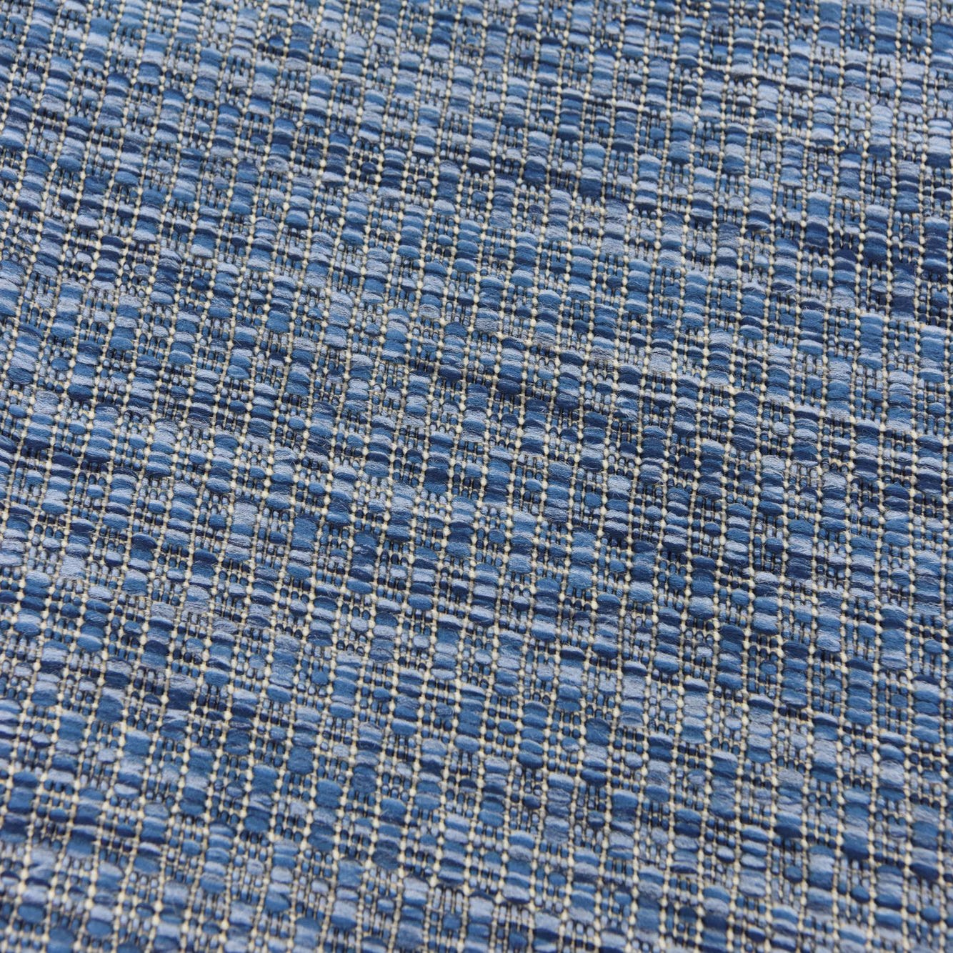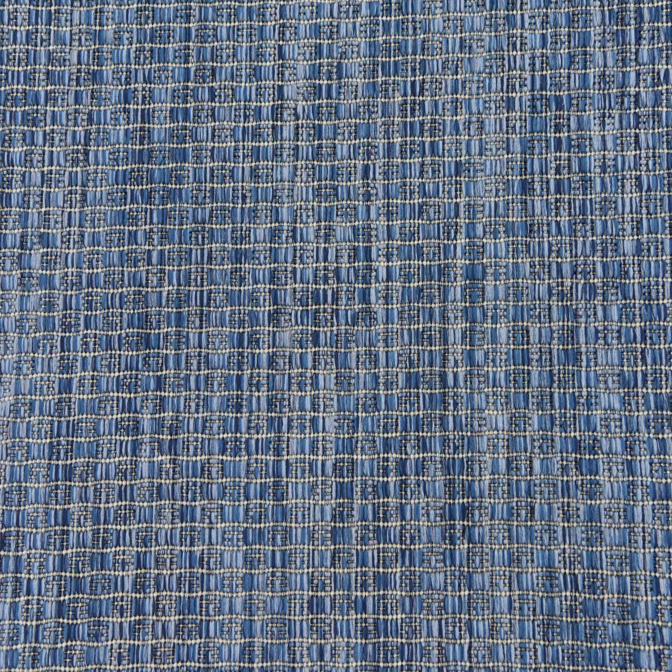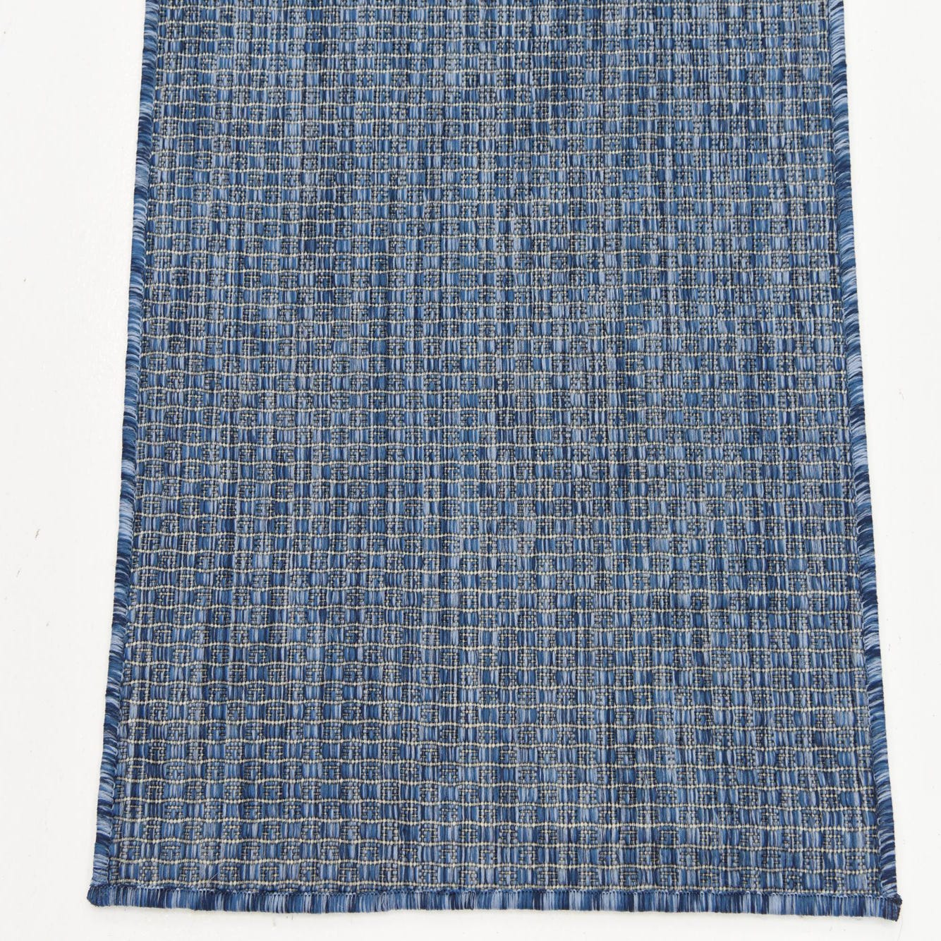 A tightly woven crosshatch pattern gives this runner a refined, textural look: a blue background threaded with lighter blue yarns creates a subtle grid that catches the eye without dominating a room. The pattern and cool blue palette keep the overall effect calm and layered, while the low-contrast threading adds visual depth from every angle.