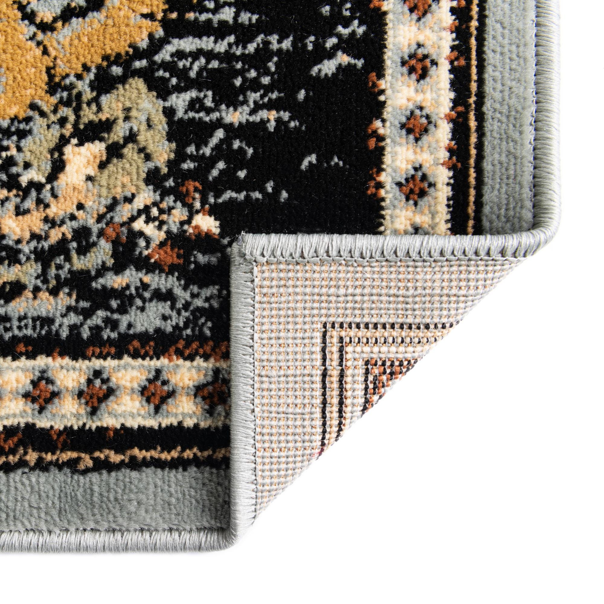 This Pioneer collection runner rug features a captivating traditional design with a modern color palette. Machine woven of 100% polypropylene, this 6 Ft runner offers a harmonized combination of blue, beige, black, and brown hues, with the background predominantly blue. The pattern presents a classic motif with a distressed look, adding a touch of timeless elegance to any space, while the machine-woven construction ensures a soft texture underfoot.