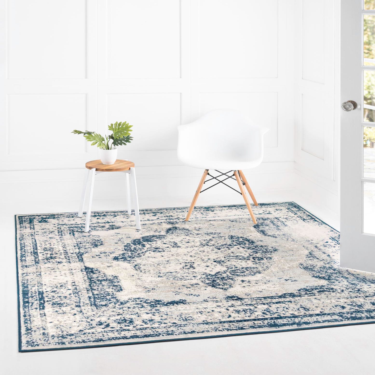 Primary color is Blue. Colors in this rug include: Blue, Beige, Ivory, Light Blue.