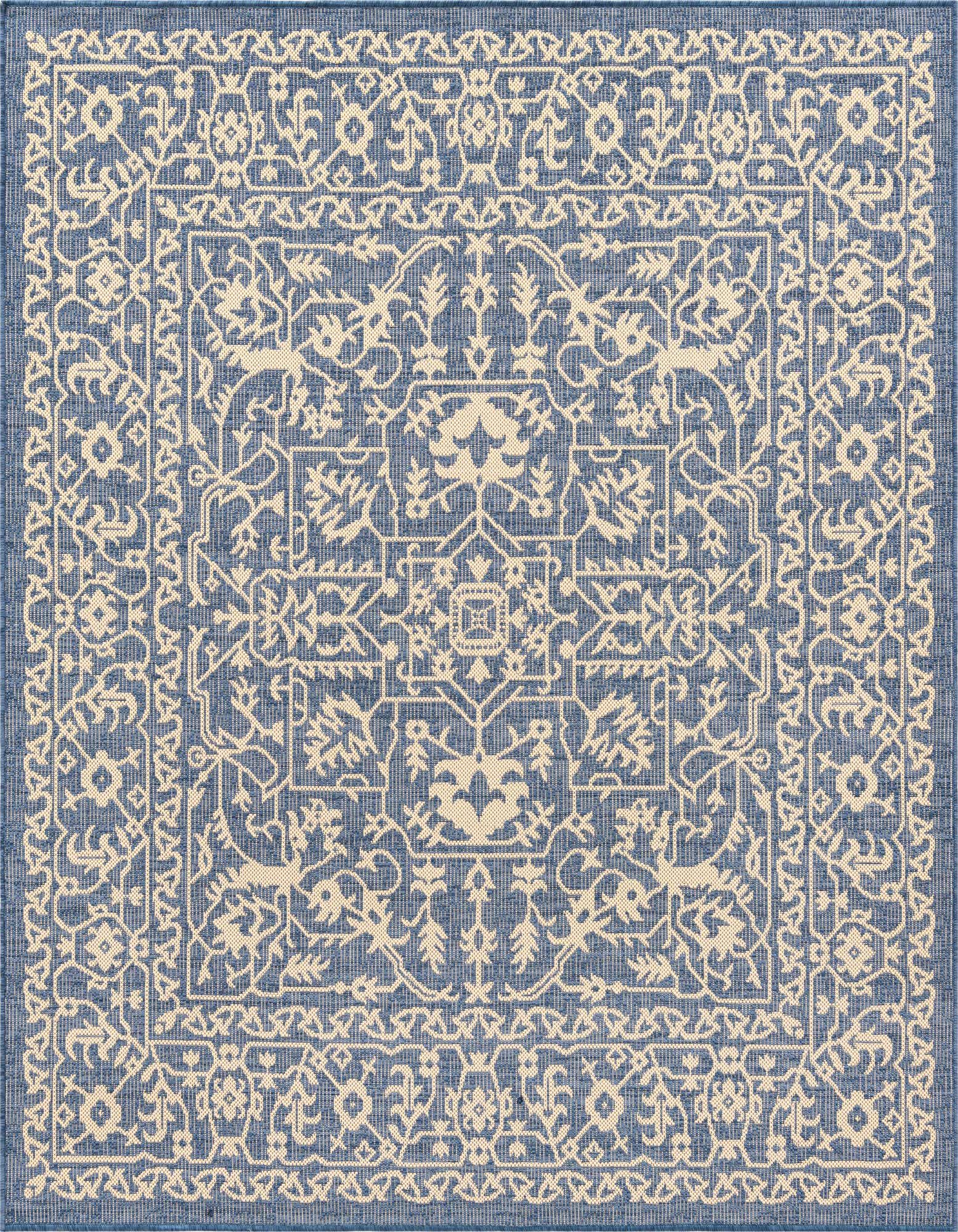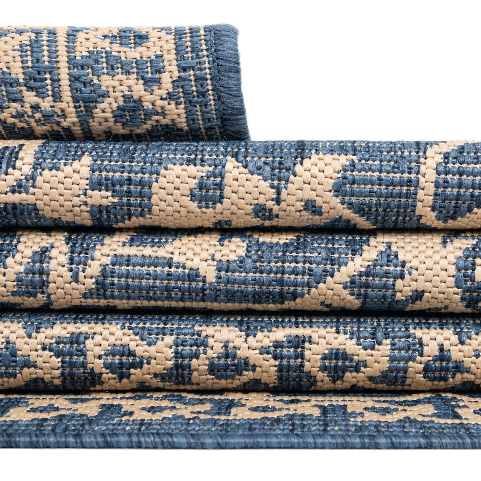Primary color is Blue. Colors in this rug include: Blue, Beige.
