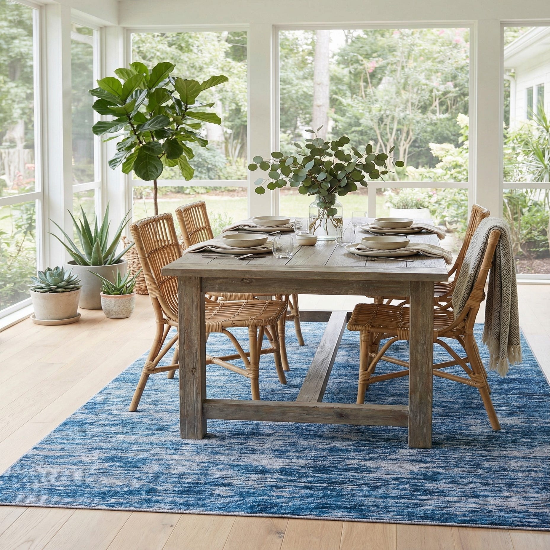 A 6x9 rectangular Rugs.com Asha modern blue area rug with a textured stripe pattern, ideal for living rooms.