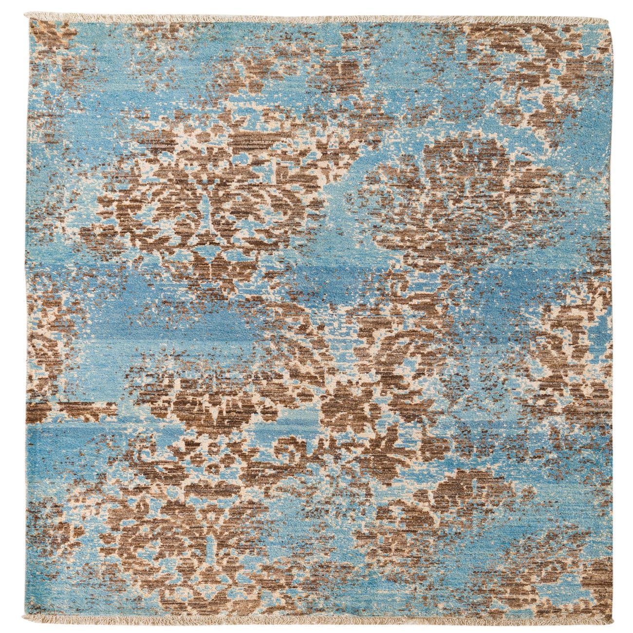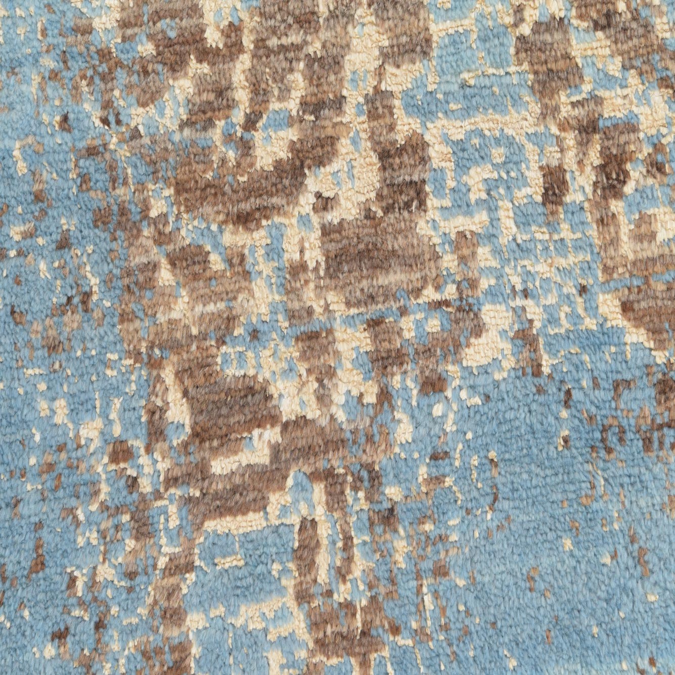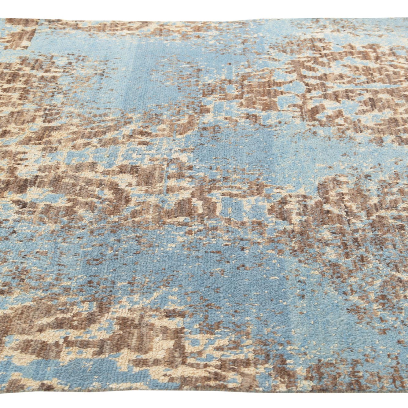 A 6x9 rectangular Darya rug with an abstract modern pattern in varying shades of blue and brown, featuring a high pile.