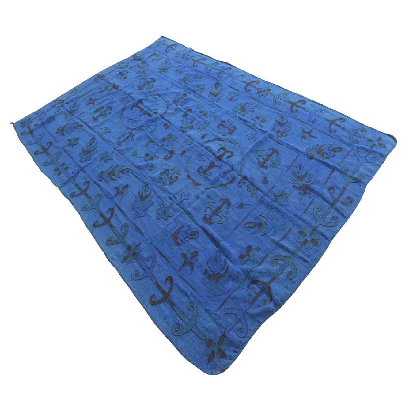 6' 4 x 9' 2 Hand Woven Kilim Suzani Wool Rug