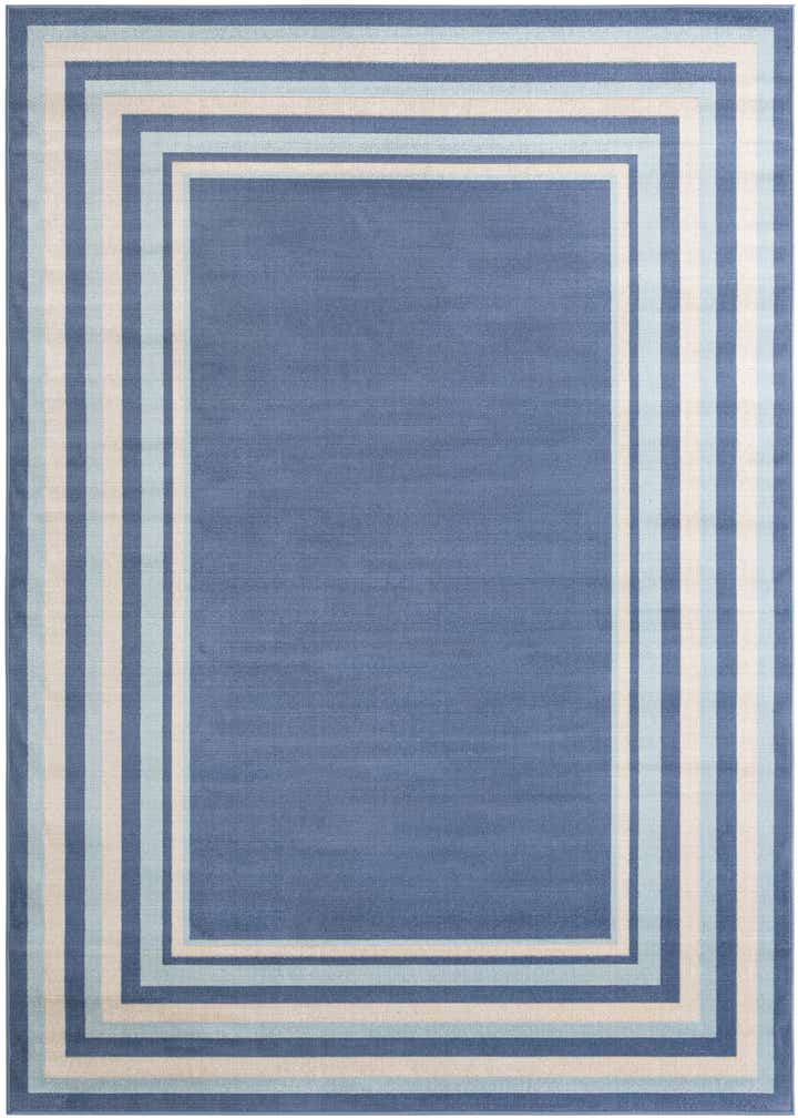 Primary color is Blue. Colors in this rug include: Blue, Light Blue, Ivory.