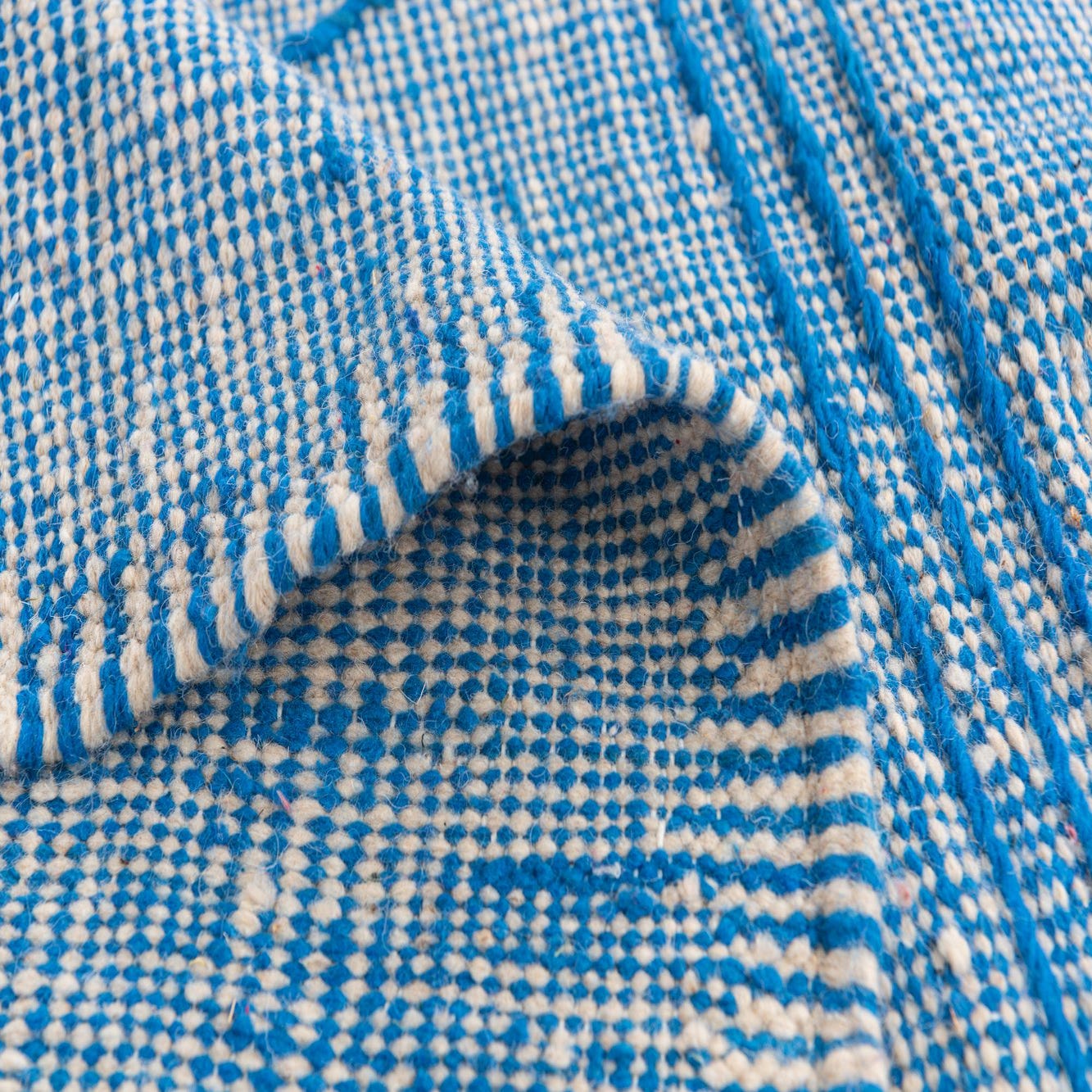 Hand-knotted from 100% wool, the rug has a gently cushioned hand underfoot and a low pile that layers well in a variety of settings. The clean geometry and blue-and-ivory palette work equally well in modern coastal, relaxed bohemian, or contemporary interiors—place it to anchor a seating area, soften a bedroom footprint, or bring color to a home office or entry. Pair with natural wood tones, crisp white linens, or warm leather to balance the cool blue and emphasize the rug’s graphic simplicity.