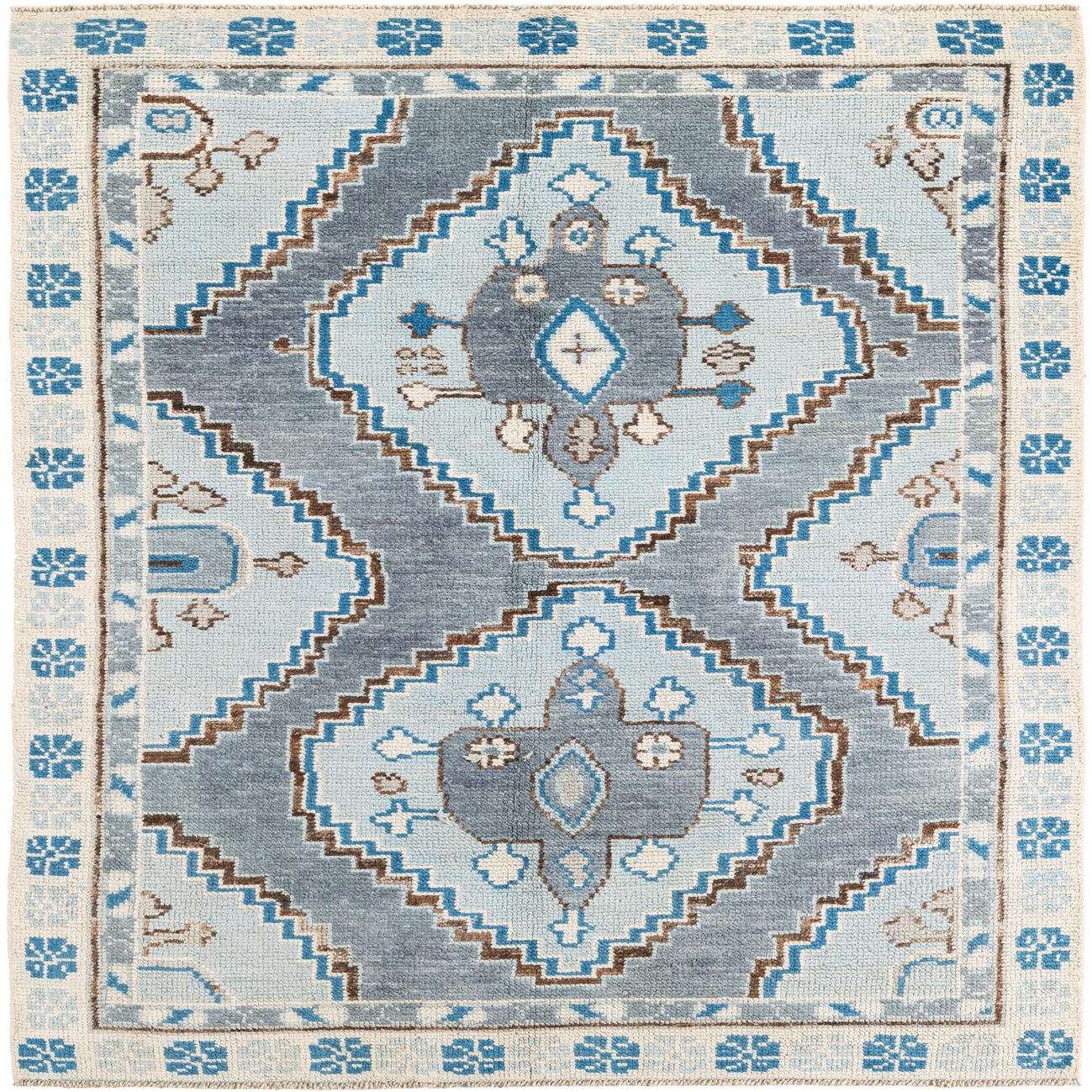 Primary color is Blue. Colors in this rug include: Blue, Ivory, Navy Blue, Light Blue, Brown.