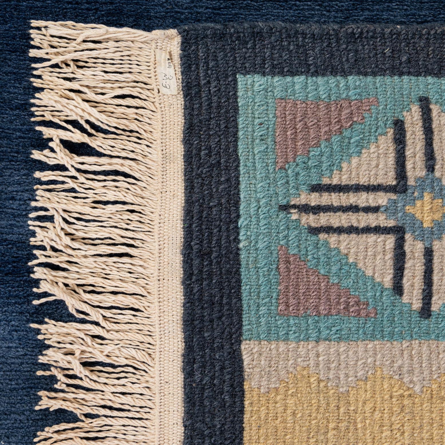 Primary color is Blue. Colors in this rug include: Blue, Green, Ivory, Light Blue, Purple, Yellow, Gray, Brown.