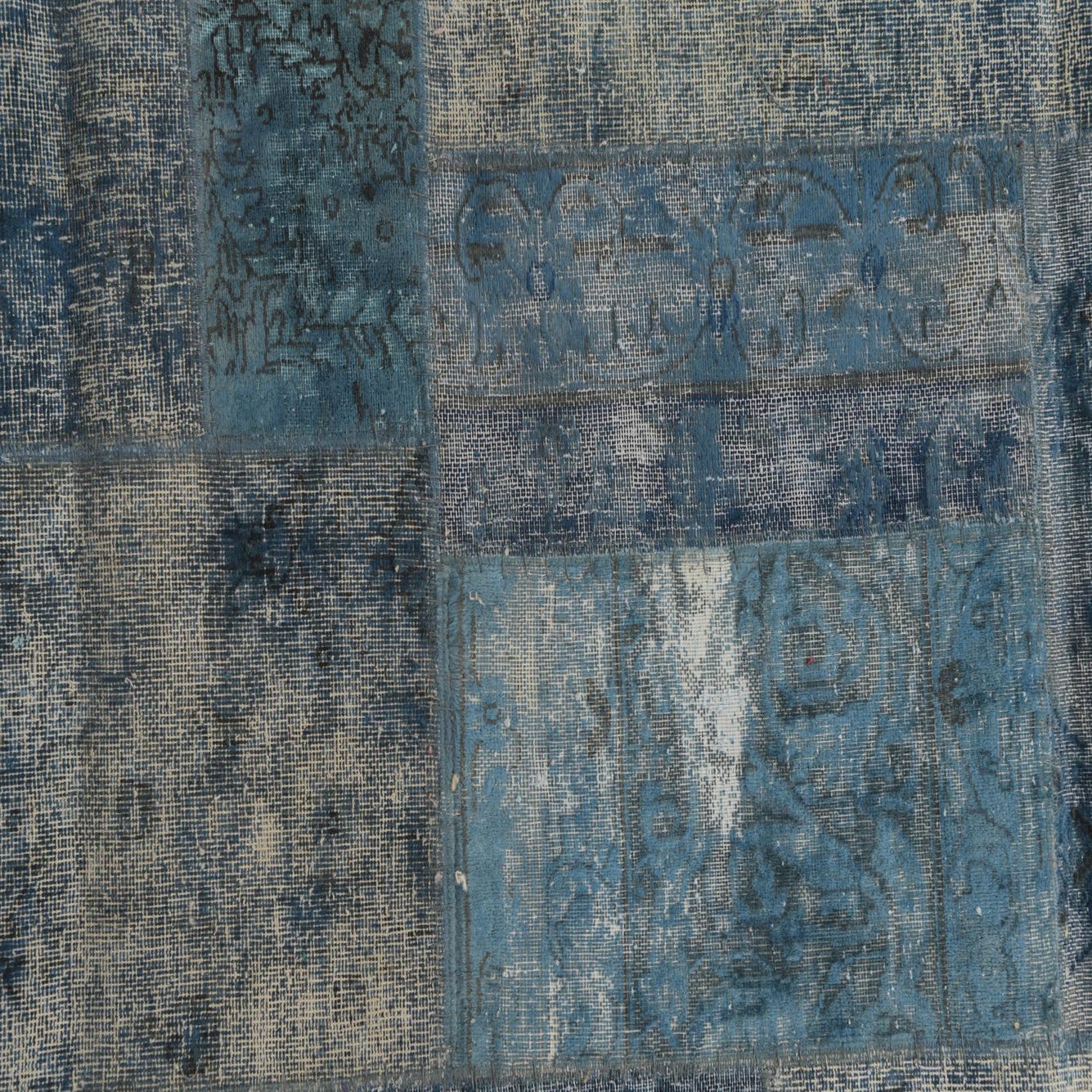 A 6x9 rectangular Ultra Vintage rug featuring a distressed patchwork design in various shades of blue and gray, showcasing Persian and abstract patterns.