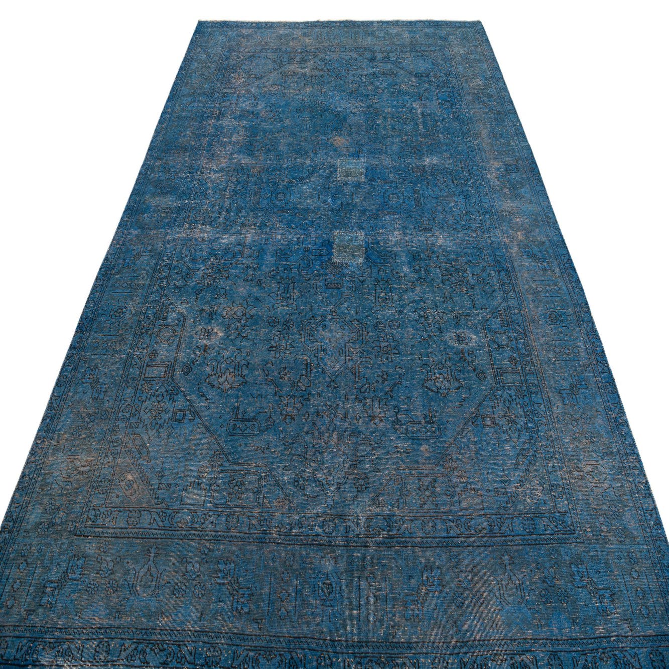 A 6x9 rectangular blue Persian-style rug with a distressed medallion pattern, suitable for a living room.