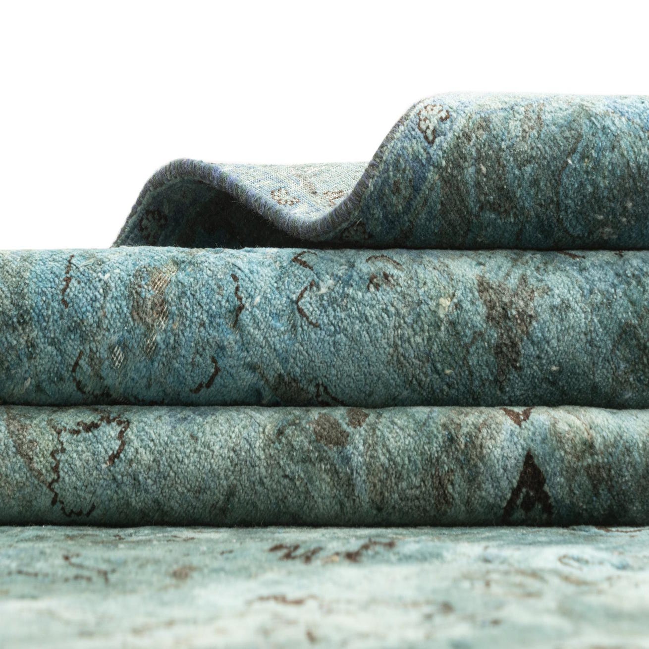 Primary color is Blue. Colors in this rug include: Blue, Brown, Green, Grey.