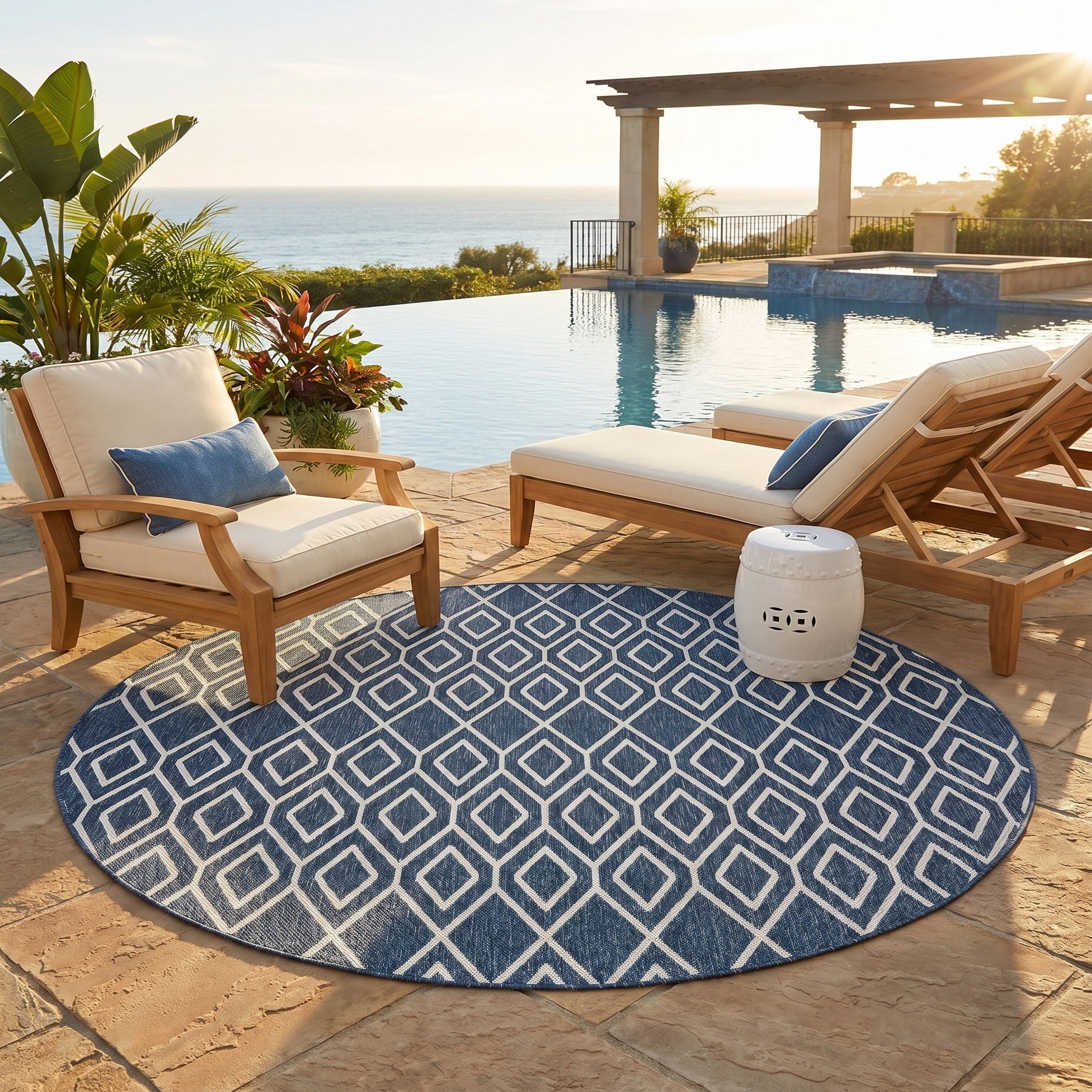 7' x 7' Easy-Clean Jill Zarin Indoor / Outdoor Round Rug