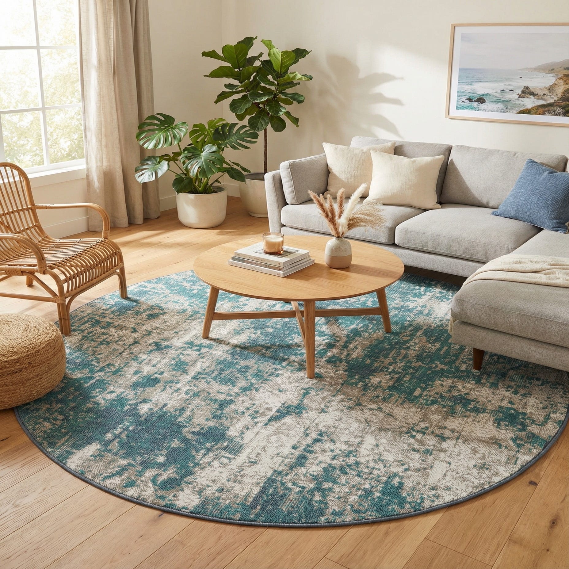 The stain-resistant nature of the rug, coupled with its pet-friendly and shed-free properties, makes it a practical choice for spaces that see frequent use. This rug is suited for a range of scenarios, including patios, decks, and poolside areas where leisure and endurance are top priorities. Its round shape and size also make it an ideal focal point for circular dining sets or conversation areas.