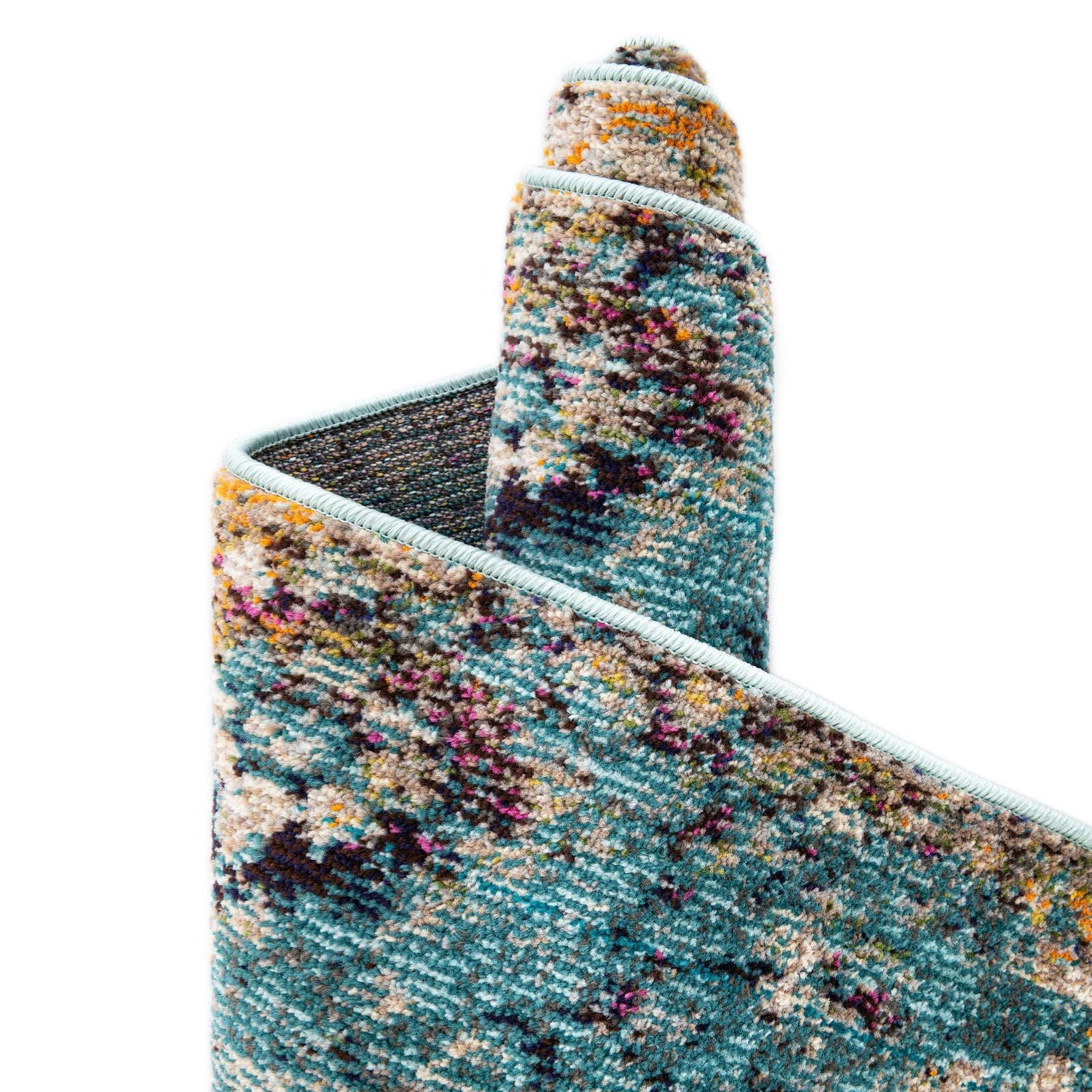 This runner fits well in a variety of interiors: place it in a hallway or entry to introduce color and pattern, layer it along a kitchen aisle for visual interest, or use it beside a bed or sofa to anchor a seating area. It pairs especially well with natural wood tones, navy or cream upholstery, and mixed-metal accents, and complements both modern and eclectic schemes where a balanced mix of color and worn-in character is desired.