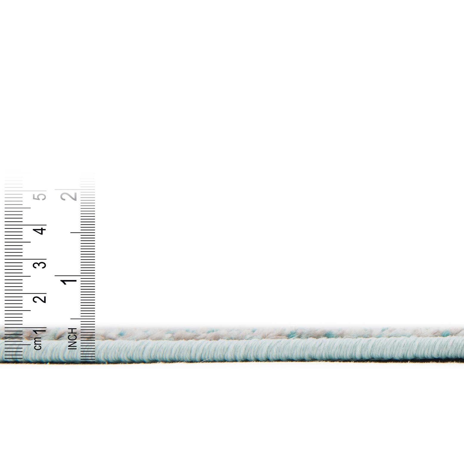 Style-wise the rug leans contemporary with transitional appeal, making it versatile for several settings. It works well in a hallway or entry where the gradient can lead the eye, as a kitchen or gallery runner to add color without overwhelming, or layered at the foot of a bed to introduce cool tones. Pair it with warm wood furniture and neutral upholstery to balance the cooler blues, or combine with navy and gray accents for a coordinated, modern look. The machine-made construction supports regular use in high-traffic areas while maintaining the rug’s textured appearance.