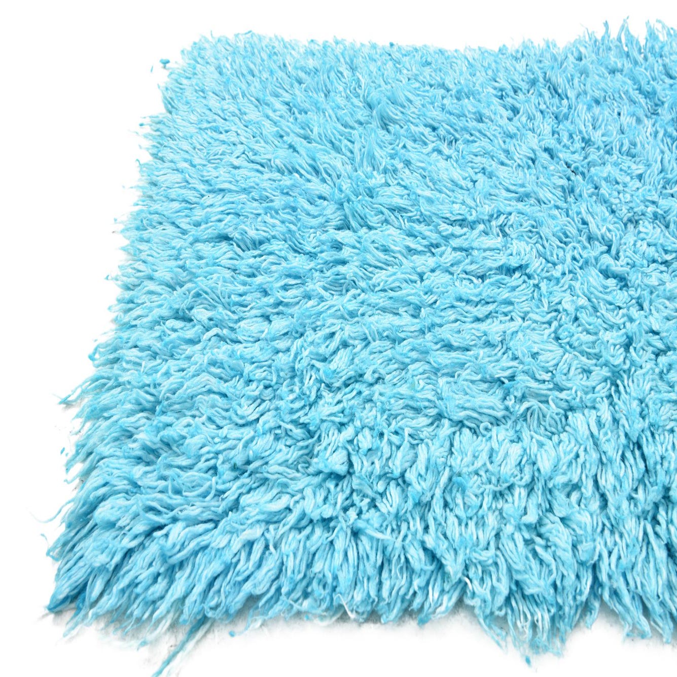 A vibrant blue 7 ft shag runner rug with a plush, textured pile, ideal for a hallway.