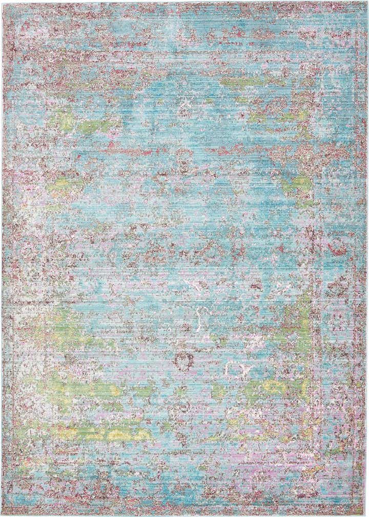 The Alexis Collection rug offers a harmonious blend of colors with a blue background and nuances of burgundy, gray, green, puce, purple, yellow, pink, and beige. This 7x10 piece is machine woven from 100% polyester, ensuring durability and a soft texture underfoot. With its diverse color palette, the rug displays a distressed pattern that recalls the look of vintage textiles, creating visual depth and a sense of history.