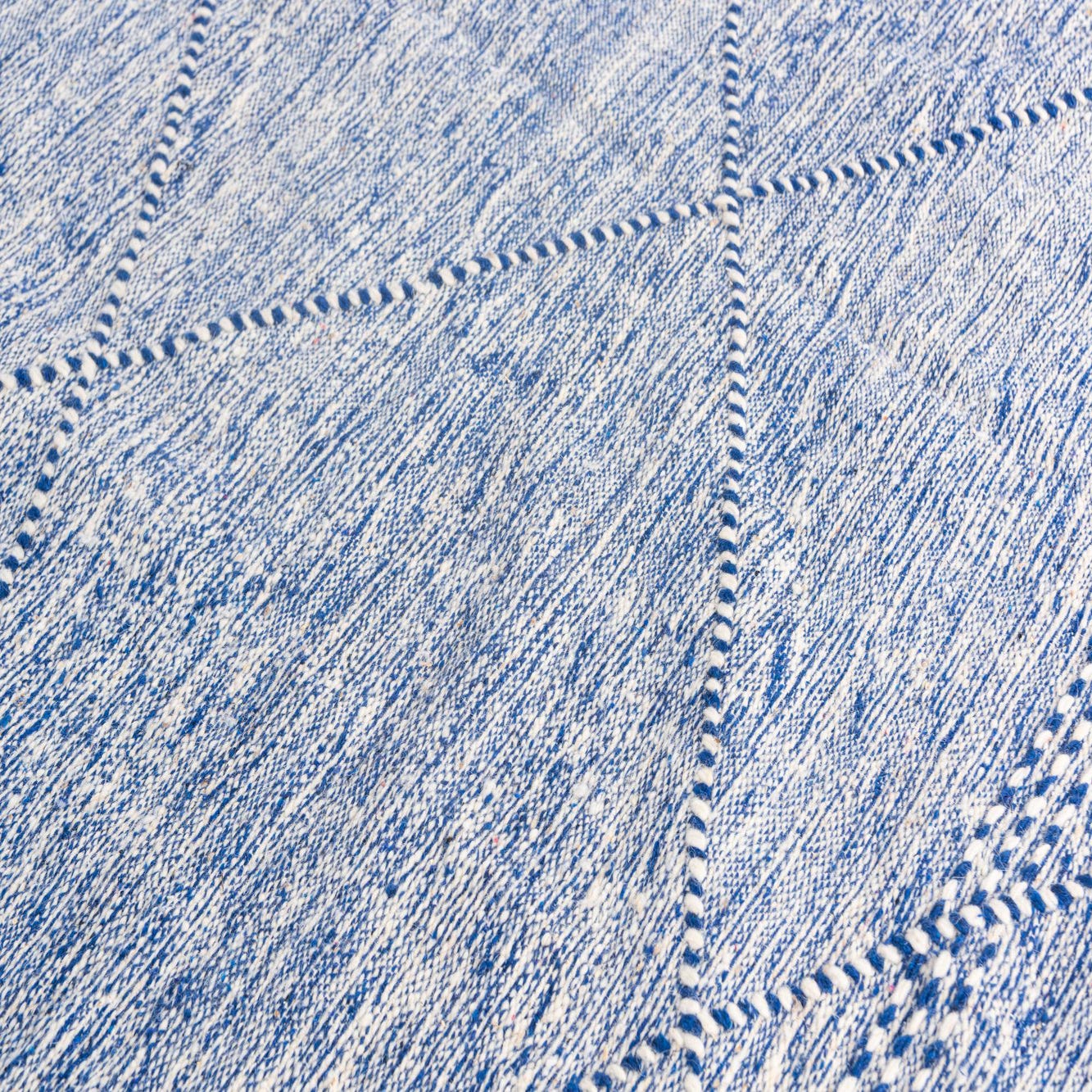 Primary color is Blue. Colors in this rug include: Blue, Ivory.