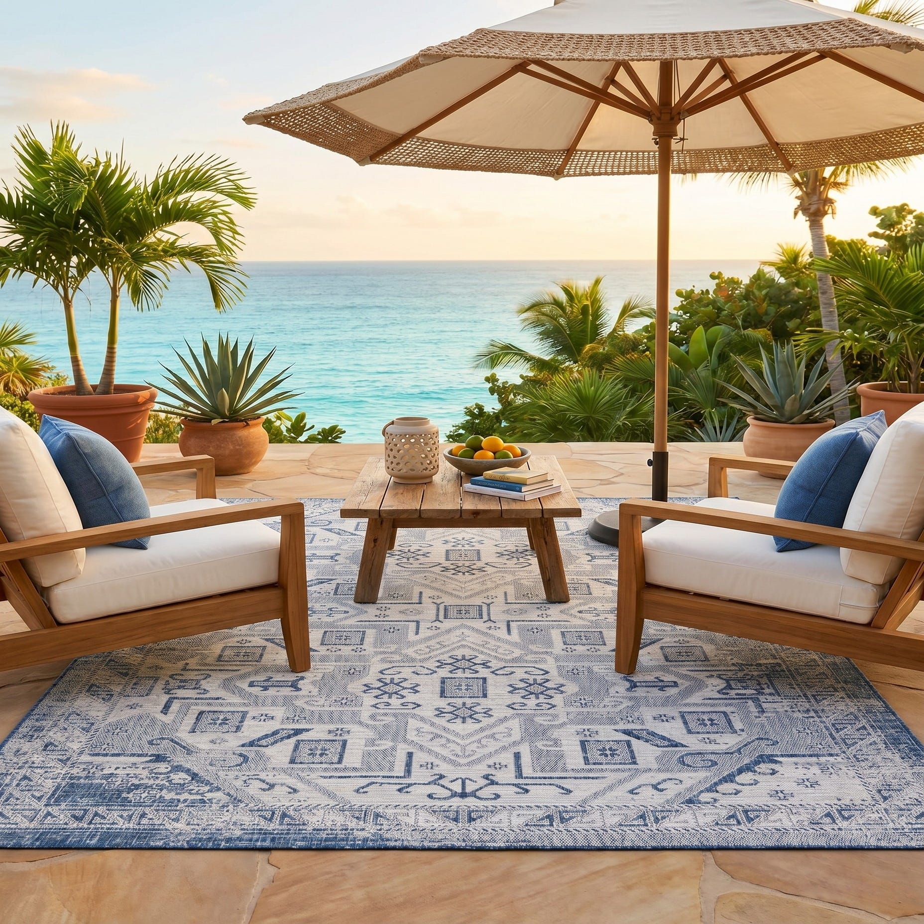 7' x 10' Easy-Clean Aztec Indoor / Outdoor Rug