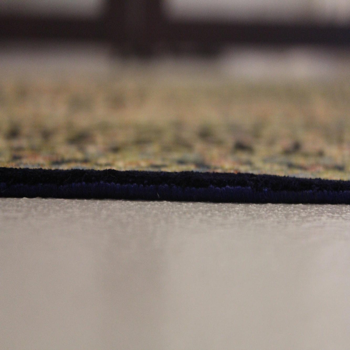 Primary color is Blue. Colors in this rug include: Blue, Ivory, Light Blue, Green, Brown, Pink.