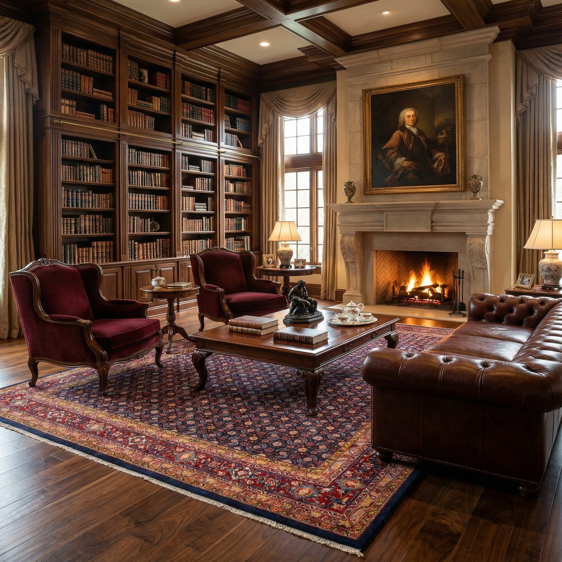 The dense, soft texture of the wool contributes to the rug's luxurious feel underfoot, while its robust construction ensures durability for high-traffic areas. With its classic styling, this rug can seamlessly integrate into a variety of interior design scenarios, from traditional settings that favor rich textiles and antique furniture to more transitional spaces where it can add warmth and historical charm. It would also serve as a sophisticated focal point in a contemporary room, providing contrast to minimalist decor.