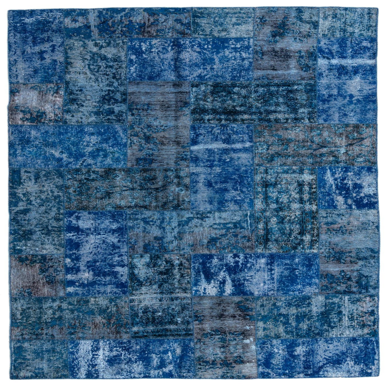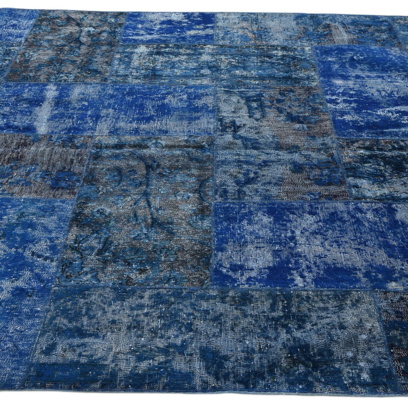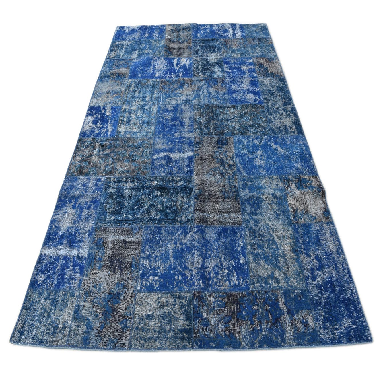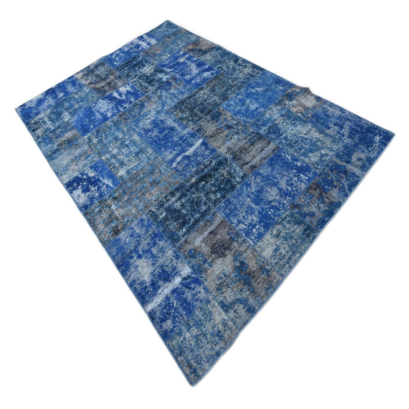 A 7x10 rectangular Ultra Vintage rug by Rugs.com, featuring a distressed blue patchwork design with varying shades and textures, ideal for a living room.