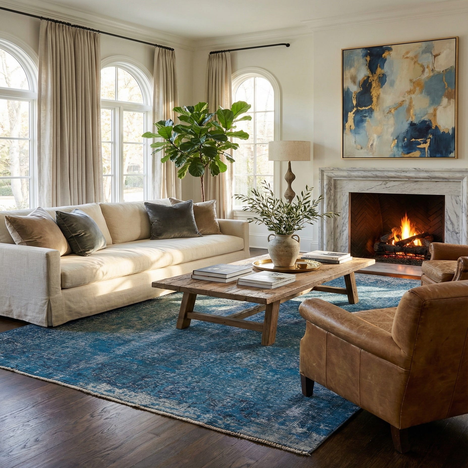 This piece works well as an anchor for a living room seating group, pairing nicely with light wood furniture, linen upholstery, or brass accents for a relaxed, refined look. It will also complement a dining area or home office where you want color without visual clutter, and it layers easily in bedrooms—mixing with neutral palettes or deeper jewel tones like navy and teal for added warmth and dimension.