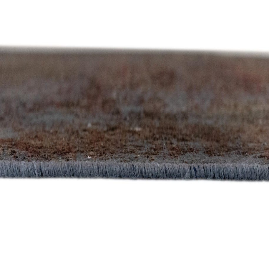 The Vintage Royal Collection offers a 7x10 rug, hand-made from 100% wool, presenting a fusion of traditional charm and subdued elegance. This piece showcases a blue background with intricate patterns overlaid in varying shades of brown, creating a time-weathered aesthetic. The rug's texture is plush to the touch, conveying a sense of warmth and comfort underfoot.