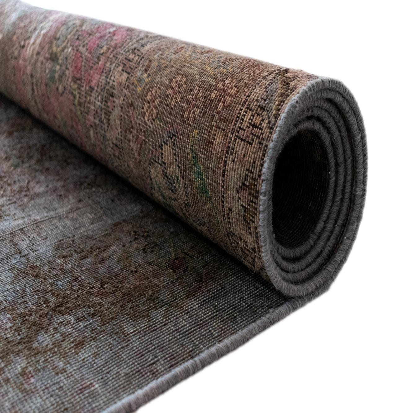 The design of this rug features a harmonious blend of floral and ornamental motifs that subtly emerge from the antique-style faded blueprint. The depth of color and artistry in the pattern work makes it a versatile choice for interiors seeking to add a historic element without overwhelming the space. Its woolen construction ensures durability for high-traffic areas while maintaining a soft, inviting feel.