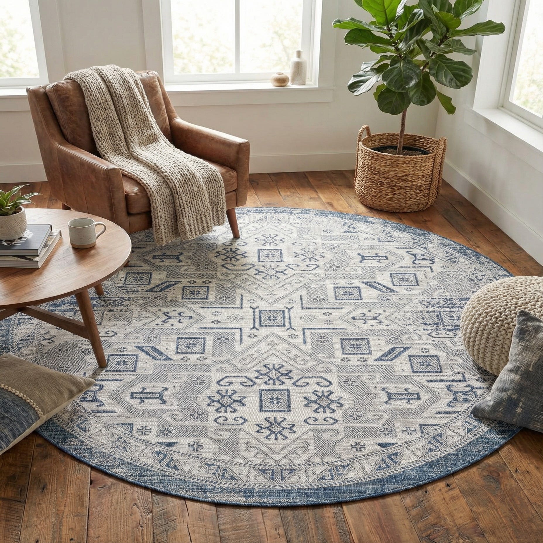 7' 10 x 7' 10 Washable Aztec Indoor / Outdoor Round Rug