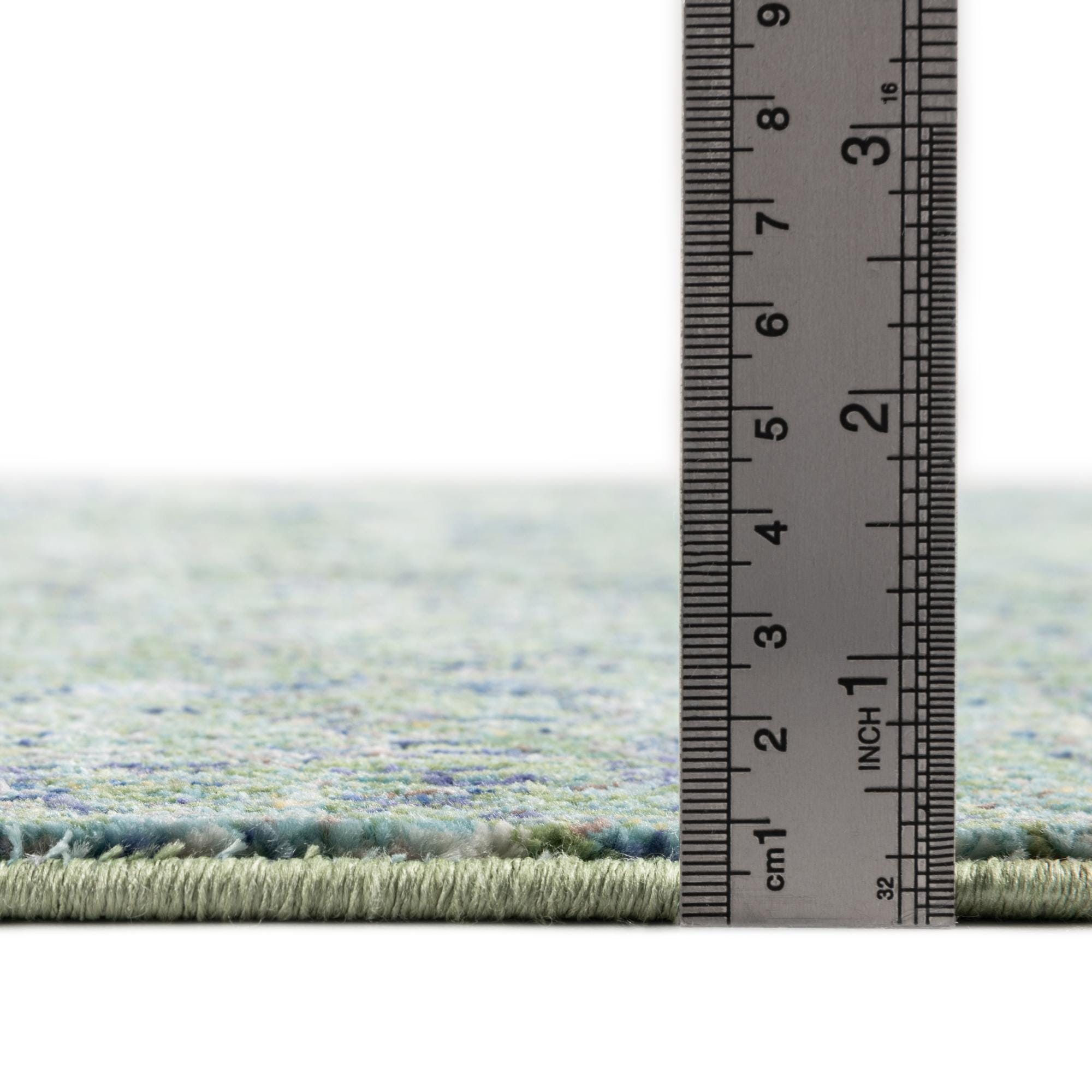 Primary color is Blue. Colors in this rug include: Blue, Ivory, Light Blue, Light Green.