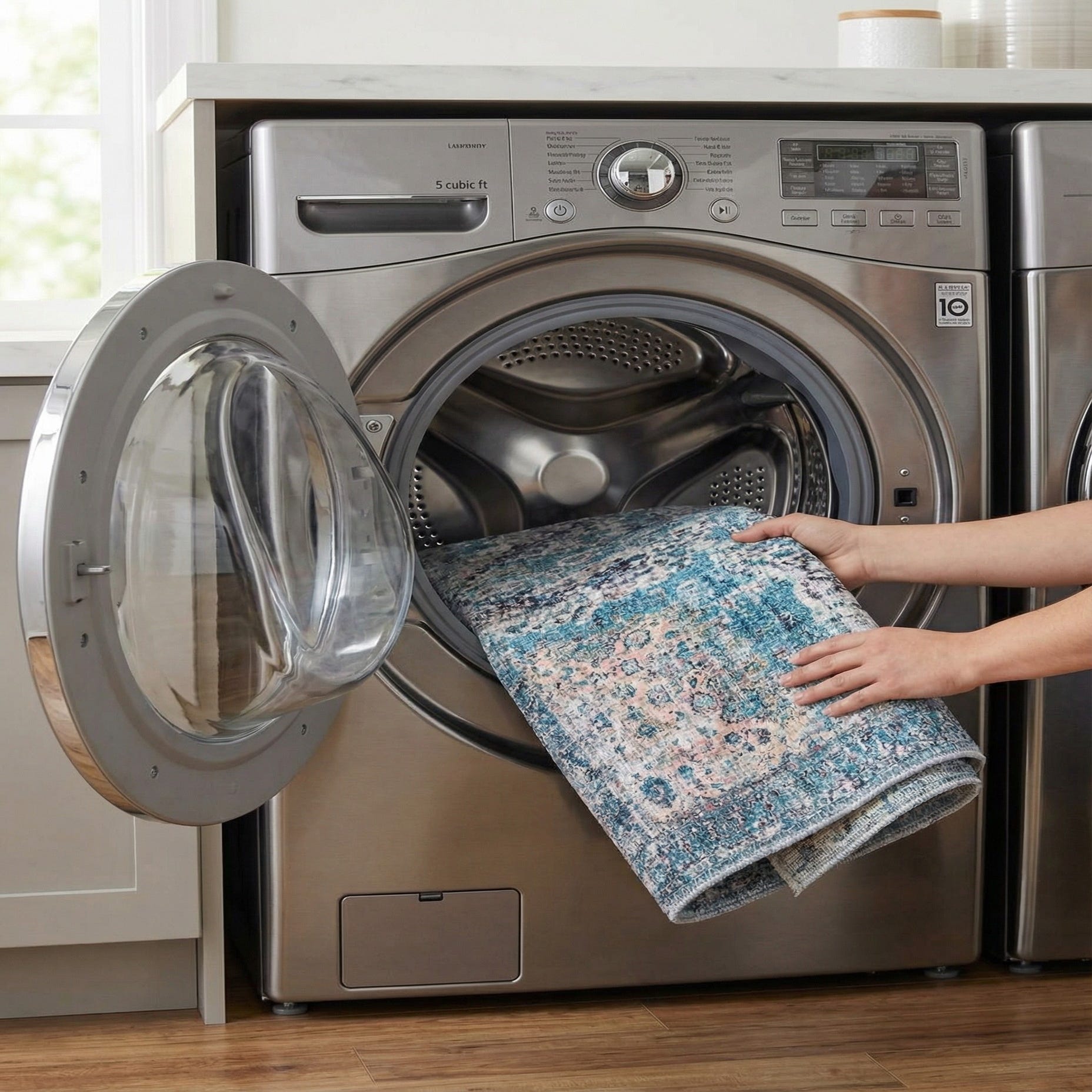 Machine-made chenille gives the rug a soft, velvety hand and a low-profile pile that feels pleasant underfoot while keeping a tidy silhouette in narrow spaces. The surface has a gentle sheen and slight pile variation where colors overlap, creating a tactile depth you can feel when you run your hand across it. This runner is well-suited for hallways or entryways, a kitchen galley, or along the side of a bed; it pairs nicely with light-washed woods and white trim for a coastal or cottage scheme, complements neutral and navy upholstery in transitional rooms, and layers easily into eclectic or boho interiors for added color and texture.