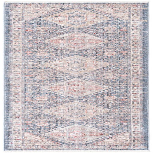 Primary color is Blue. Colors in this rug include: Blue, Beige, Ivory, Gray, Red, Pink.