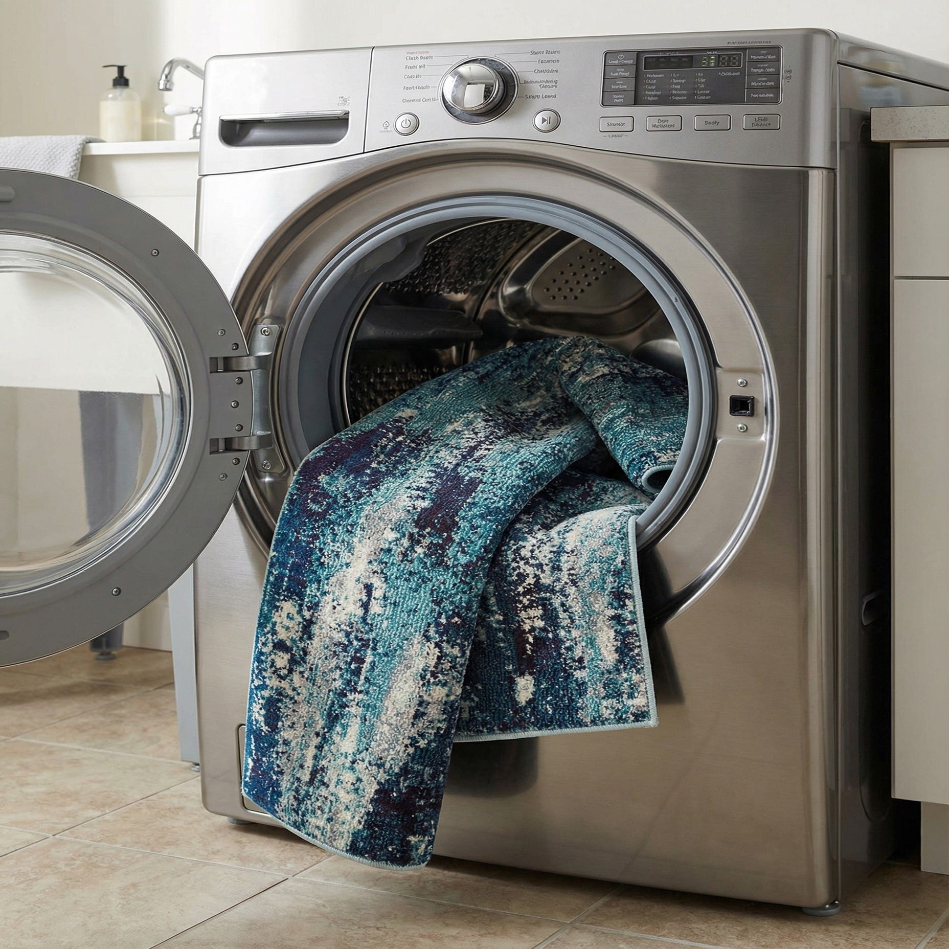 Place this runner in a long entryway or narrow corridor to add color and motion, or use it alongside a bed or in a galley kitchen to anchor the space. It pairs especially well with light wood floors, cool gray or white cabinetry, and navy or metallic accents, complementing contemporary, coastal, and transitional interiors.
