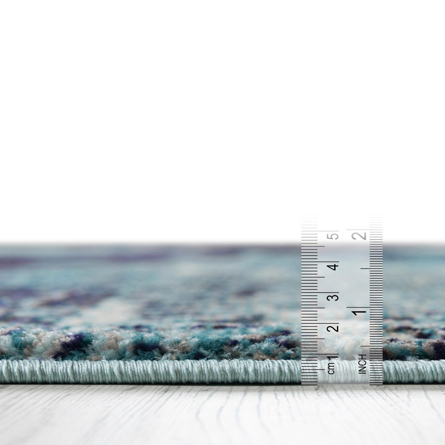 Primary color is Blue. Colors in this rug include: Blue, Gray, Ivory, Navy Blue, Turquoise.