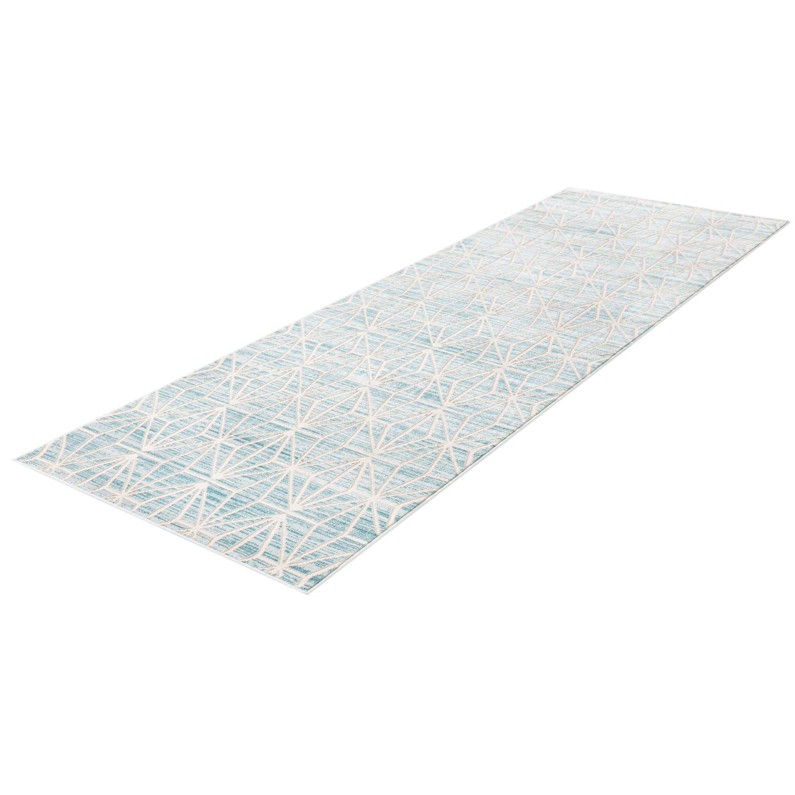 The distinct geometric motif of this runner offers a modern touch, suitable for various interior design settings. The blue and ivory color combination provides a soothing palette that can effortlessly integrate with both contemporary and traditional decors. The rug can serve as a subtle yet impactful accent piece in minimalistic spaces or can complement more eclectic styles with its clean lines and gentle hues.