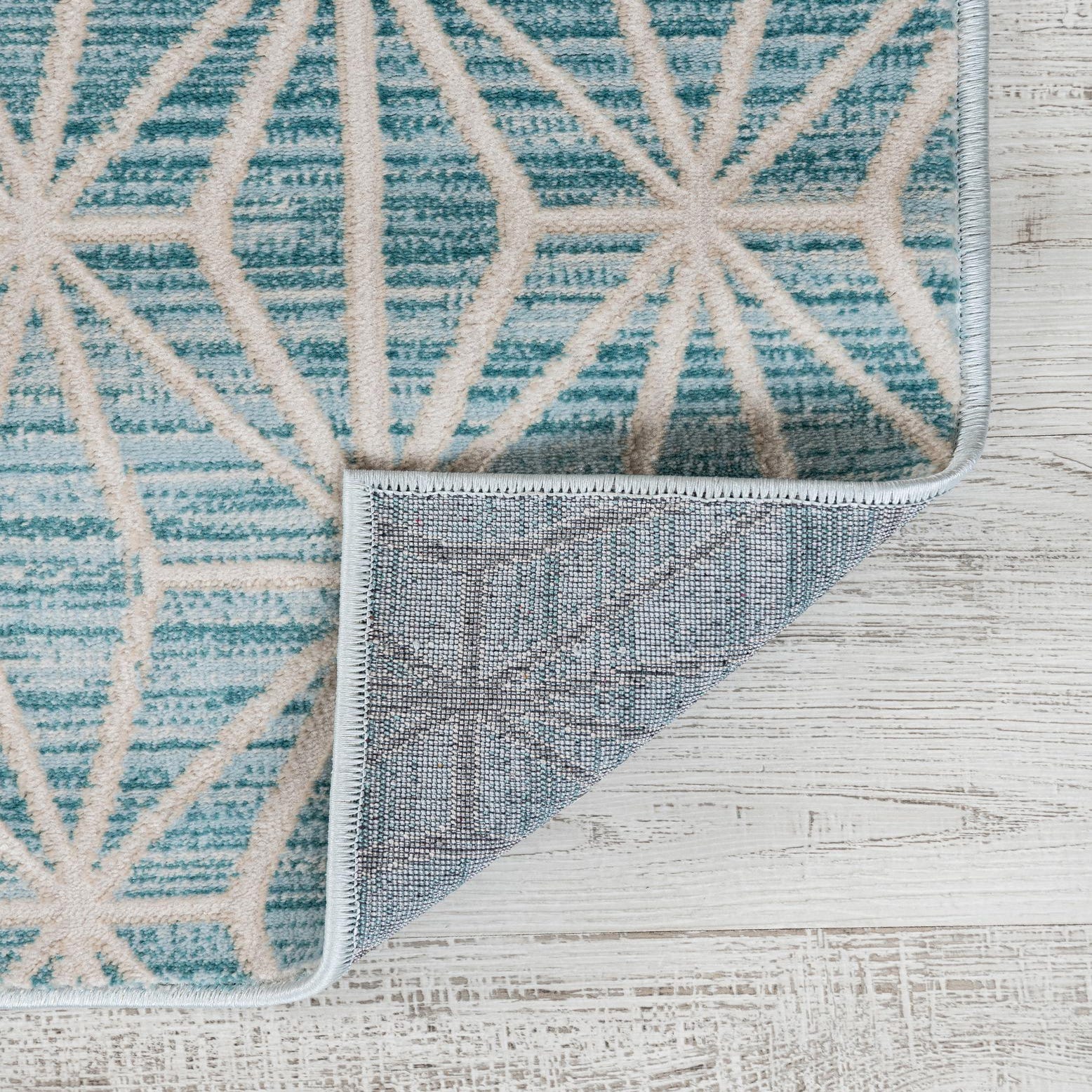 The distinct geometric motif of this runner offers a modern touch, suitable for various interior design settings. The blue and ivory color combination provides a soothing palette that can effortlessly integrate with both contemporary and traditional decors. The rug can serve as a subtle yet impactful accent piece in minimalistic spaces or can complement more eclectic styles with its clean lines and gentle hues.