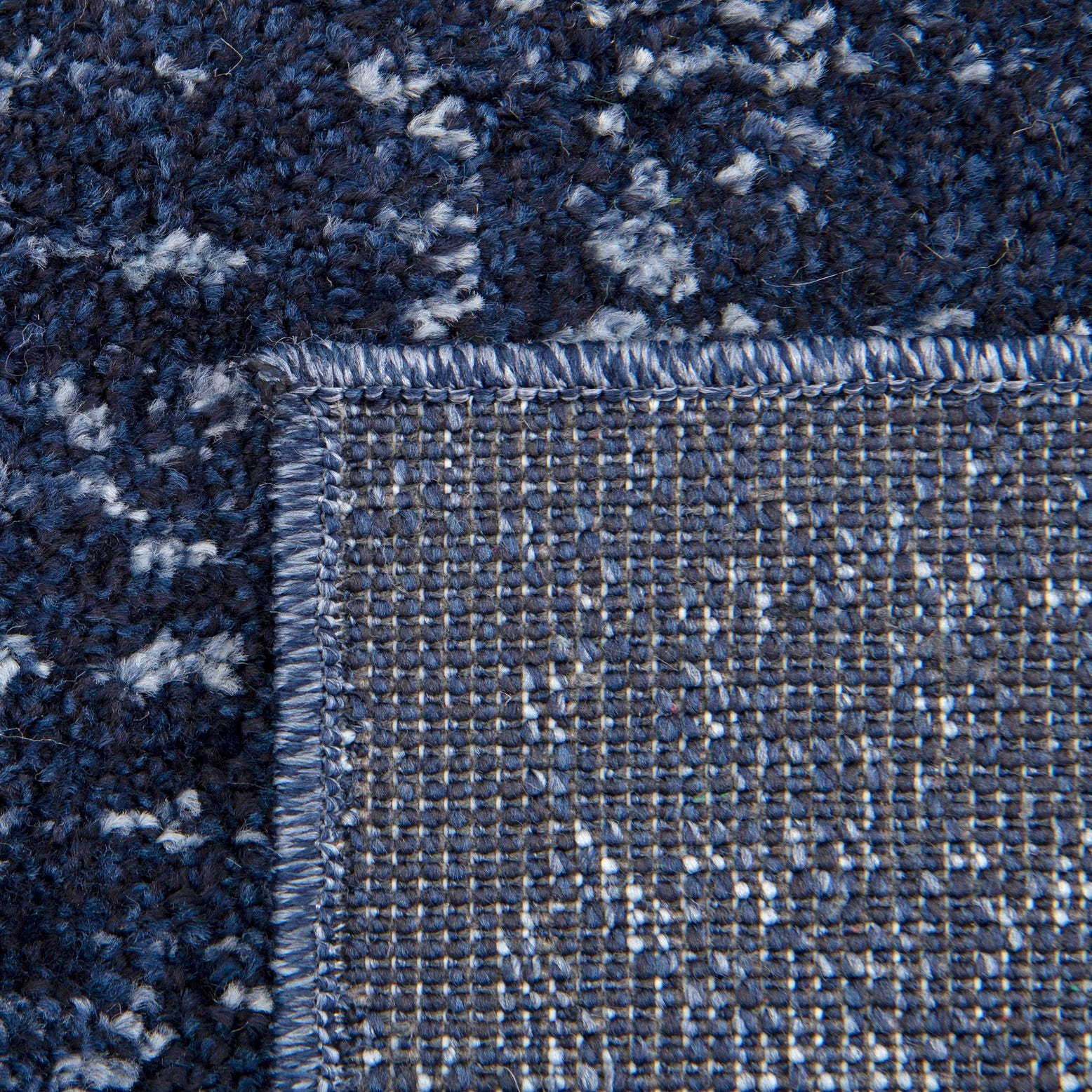 The Angelica Collection rug features a sophisticated blend of blue and navy blue tones, creating a serene and calming ambiance ideal for contemporary spaces. Machine woven of 100% polypropylene, this 8 Ft Square rug boasts a durably crafted design that is both stain-resistant and shed-free, making it a practical choice for high-traffic areas.