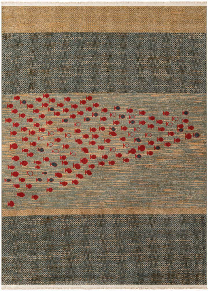 Primary color is Blue. Colors in this rug include: Blue, Light Blue, Beige, Red.