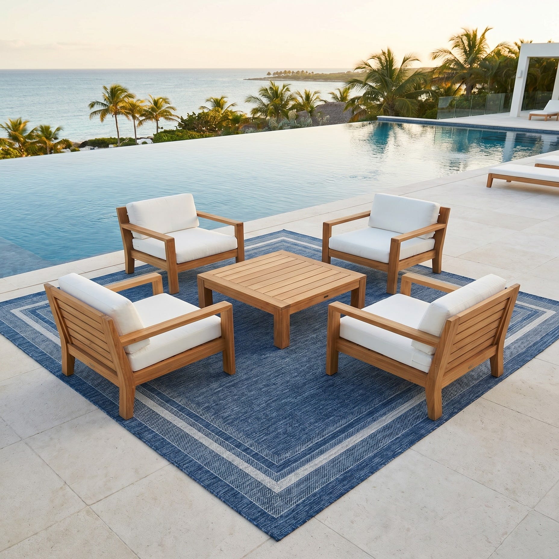 7' 10 x 7' 10 Easy-Clean Border Indoor / Outdoor Square Rug