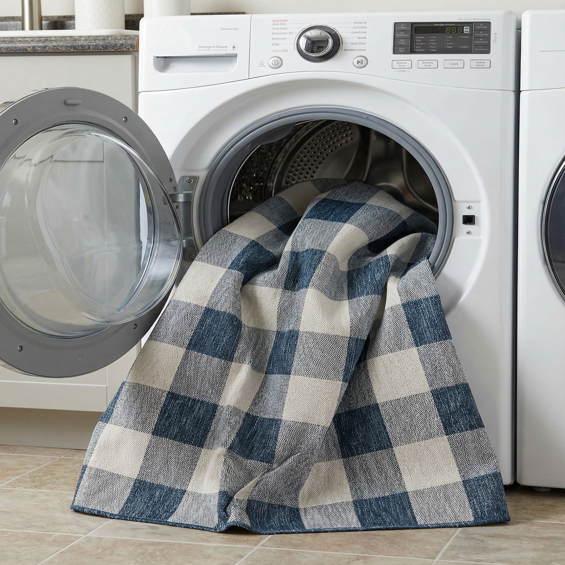In terms of interior design, this rug's crisp pattern and tranquil color palette make it suitable for a variety of decor styles, from contemporary to coastal. It will harmonize well with minimalist furnishings, adding a touch of visual interest without overwhelming the space, or can serve as a calming element in a more eclectic setting. The Outdoor Checkered rug's classic design and resilient material make it perfect for integrating into your patio, deck, sunroom, or any other indoor or outdoor area that calls for a stylish yet functional accent.