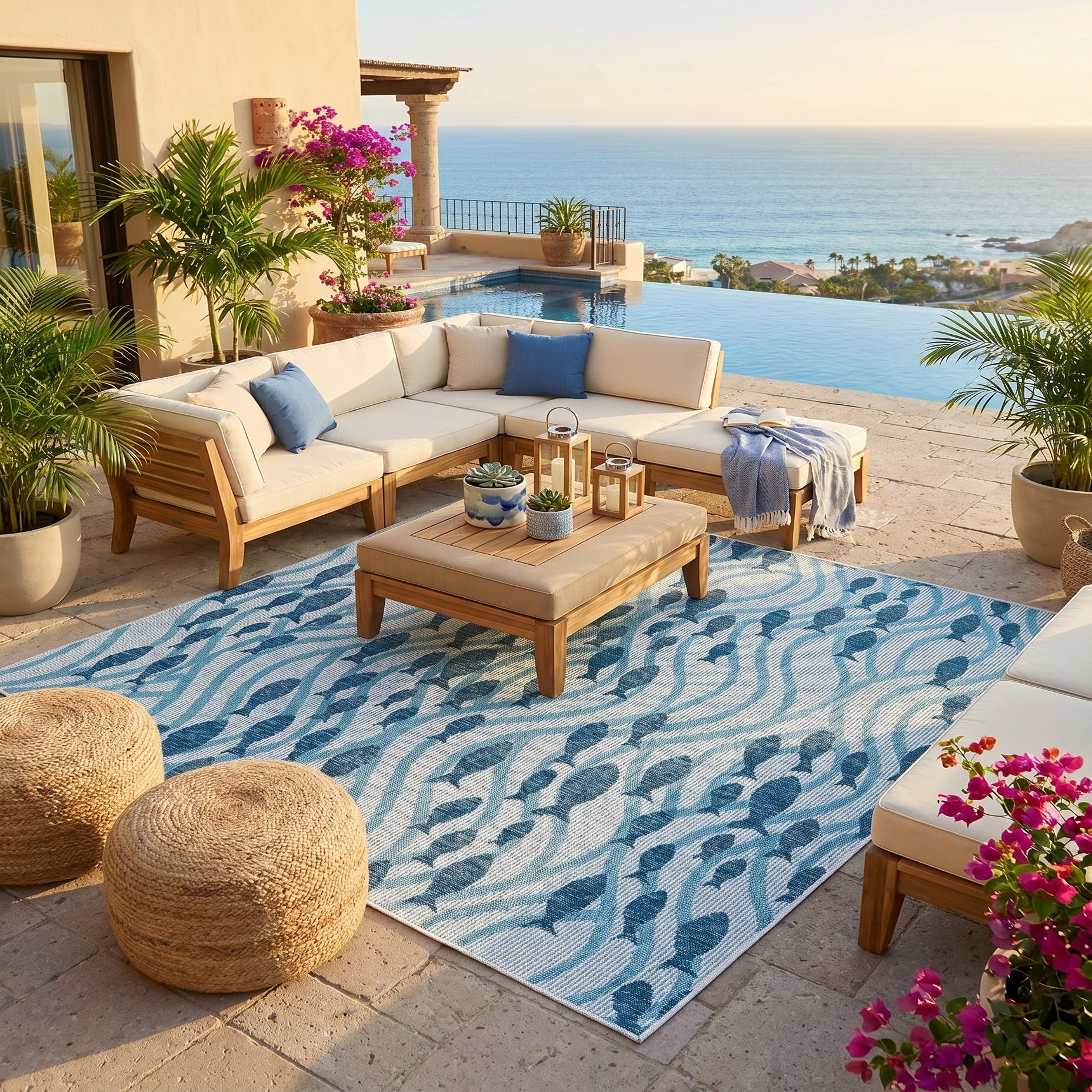 7' 10 x 7' 10 Easy-Clean Coastal Indoor / Outdoor Square Rug