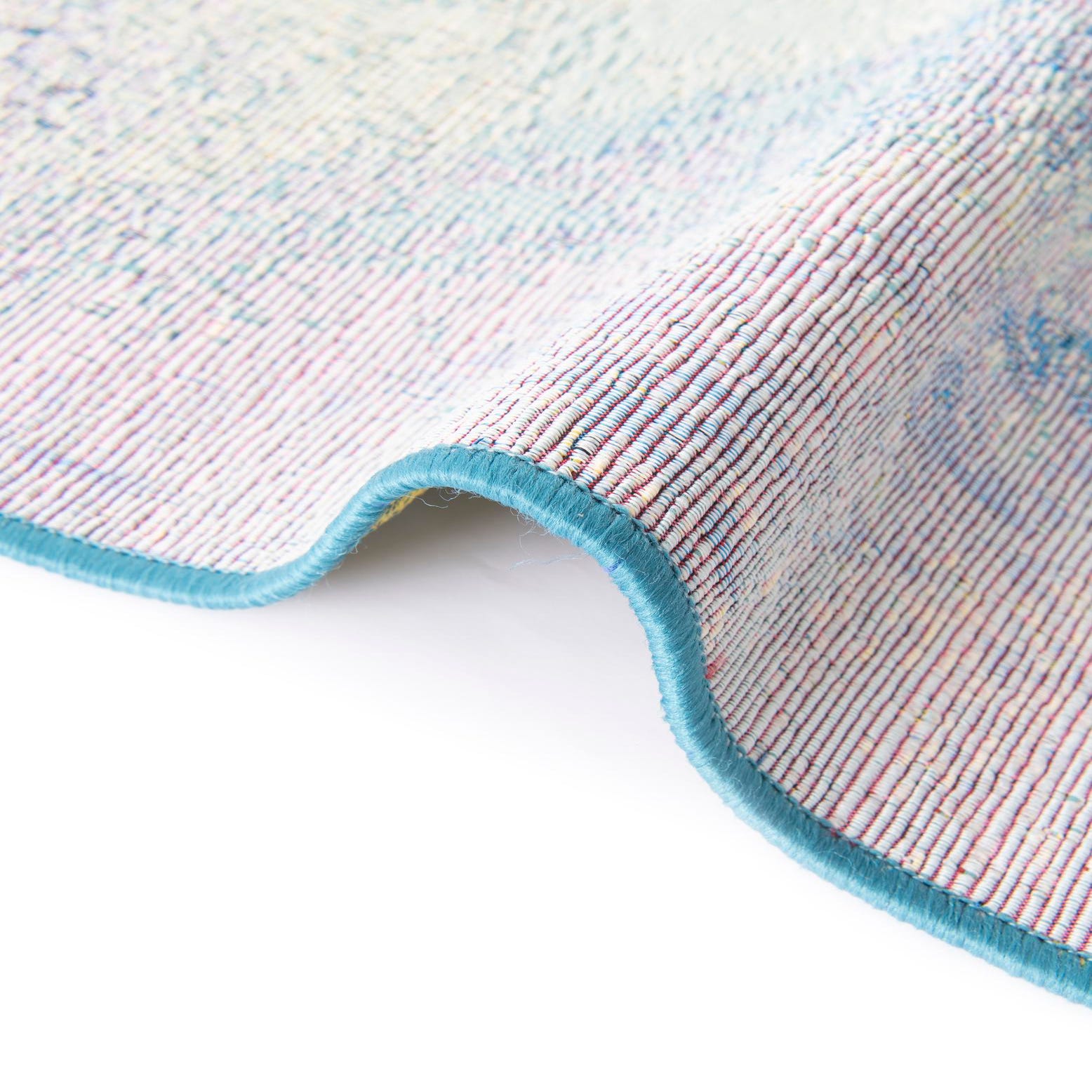 Primary color is Blue. Colors in this rug include: Blue, Ivory, Purple, Navy Blue.