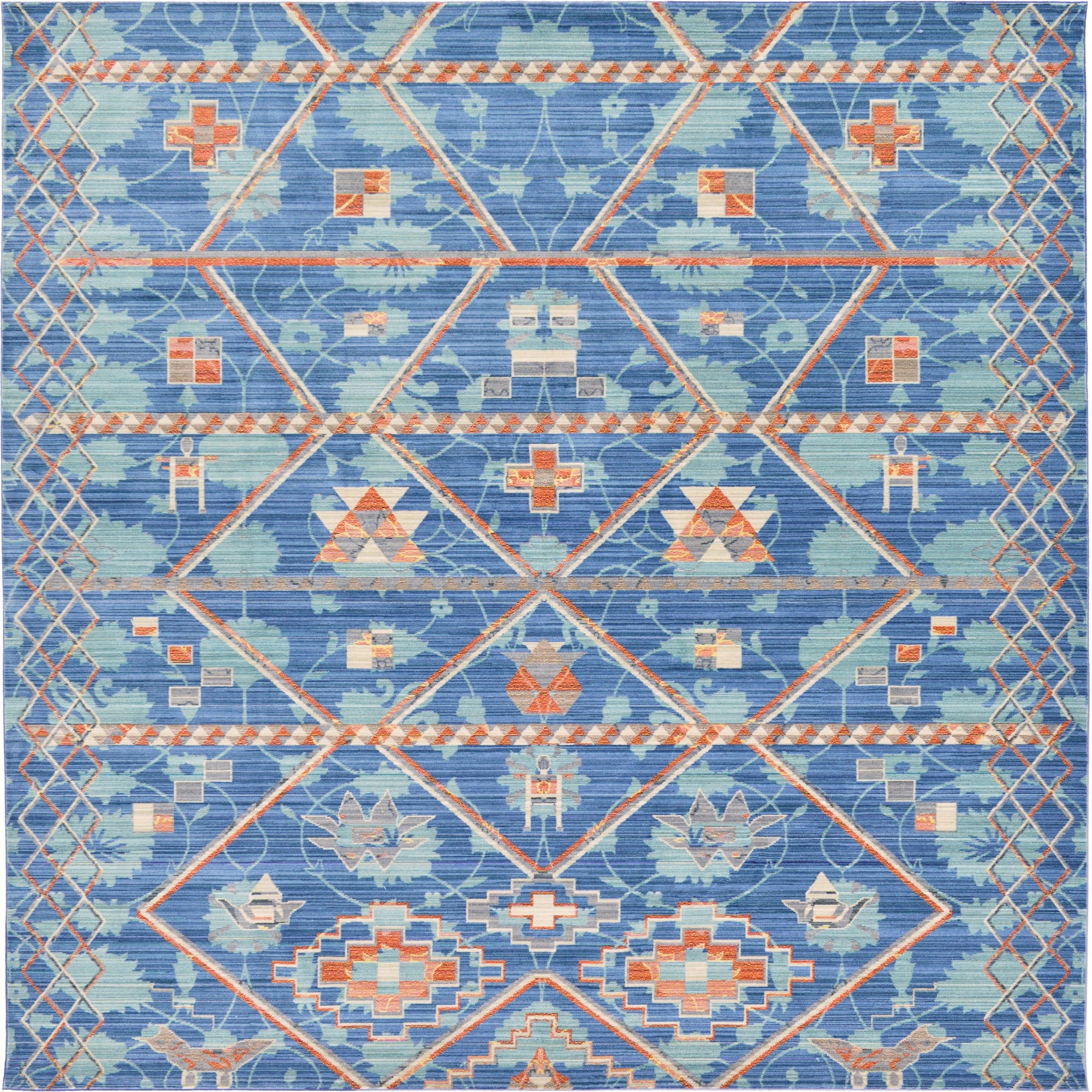 Primary color is Blue. Colors in this rug include: Blue, Ivory, Light Blue, Brown.