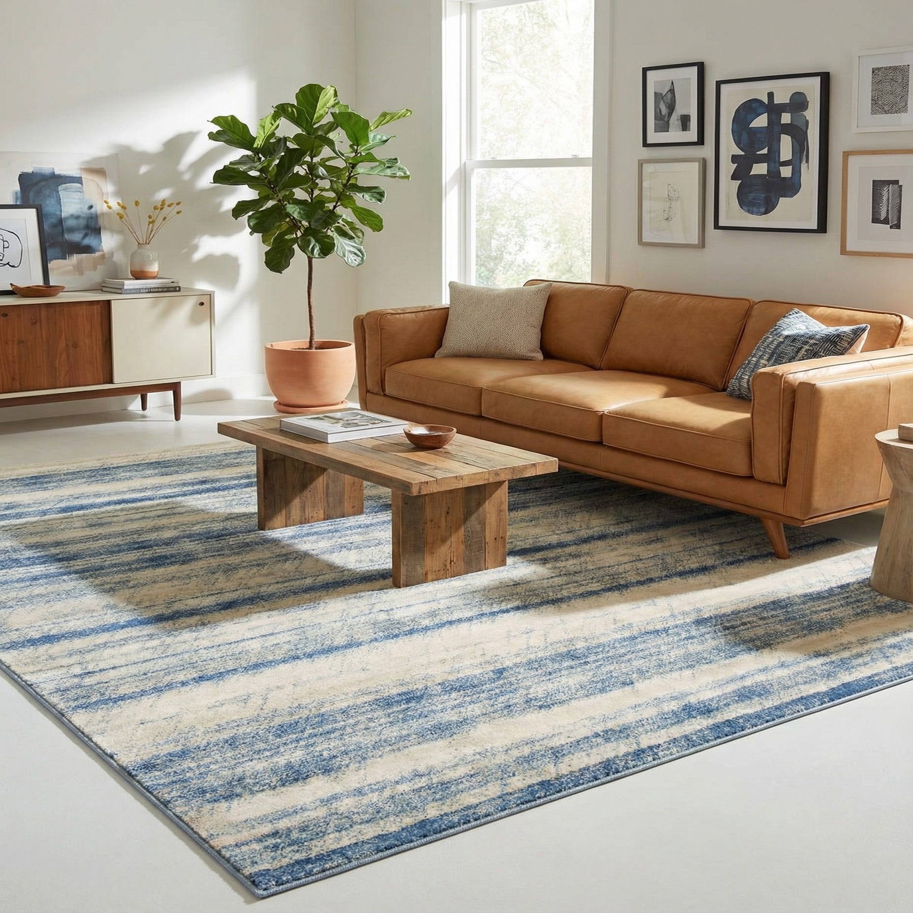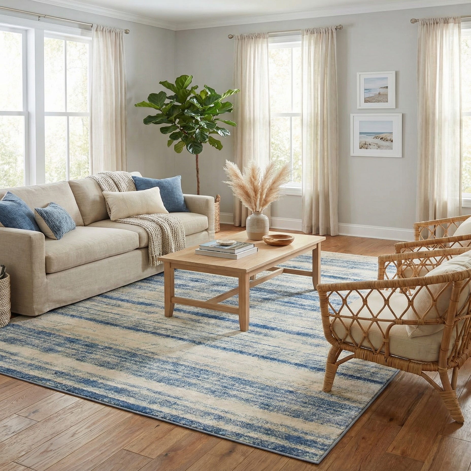 Primary color is Blue. Colors in this rug include: Blue, Beige.