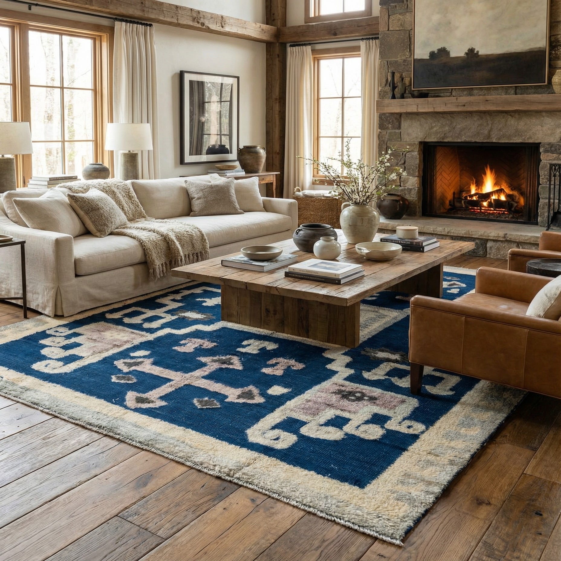This rug's rich color palette and timeless design make it an ideal choice for various interior styles. It would work particularly well in spaces with a vintage or eclectic aesthetic, where the rug's character and depth can serve as a focal point. It could also complement a more contemporary or minimalist decor, adding warmth and texture to a clean and understated environment. In a traditional setting, this piece will blend seamlessly, elevating the feel of heritage and elegance.