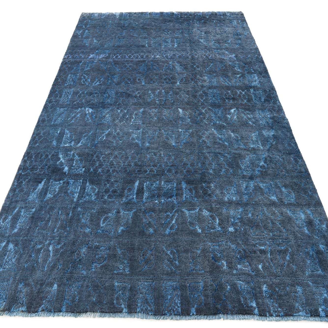 Primary color is Blue. Colors in this rug include: Blue, Navy Blue.