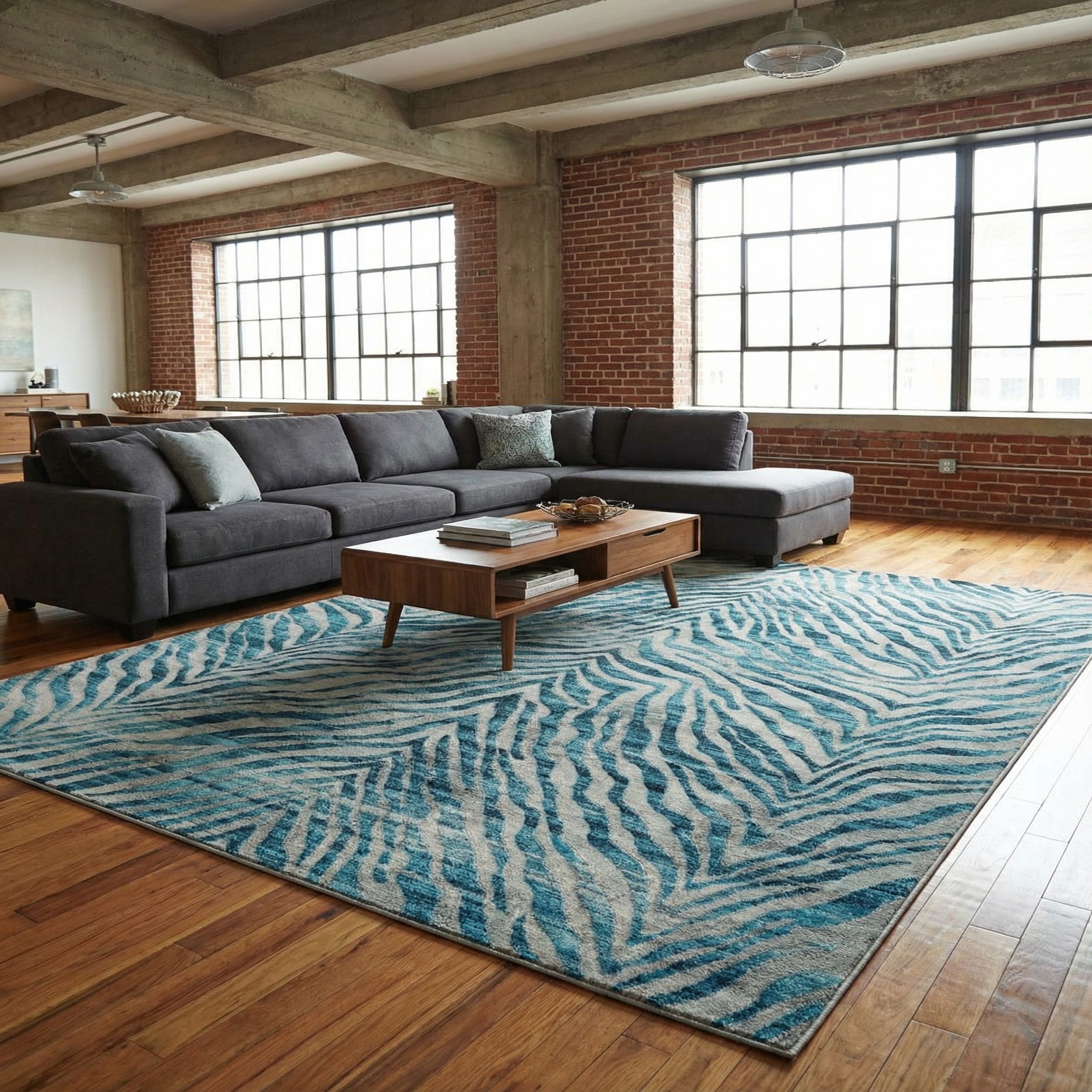 • Charcoal grey fabric sectional